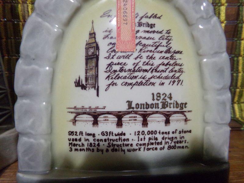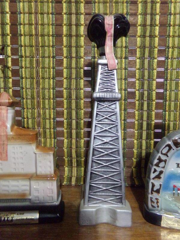 LOT 309 "OIL FIELD RIG", "LONDON BRIDGE" & A TAN BUILDING DECANTERS