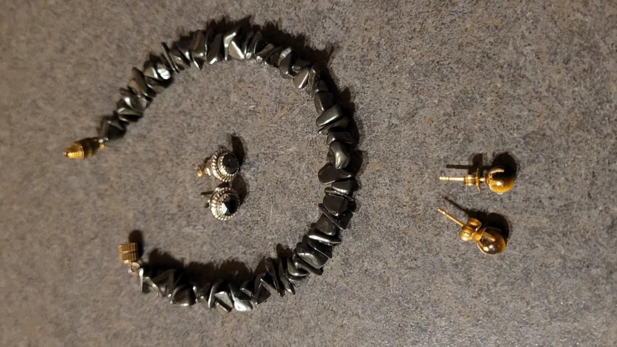 Lot 309: Malachite Bracelet & Earrings and Tiger's Eye Earrings