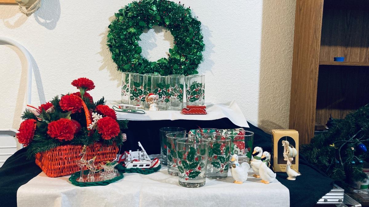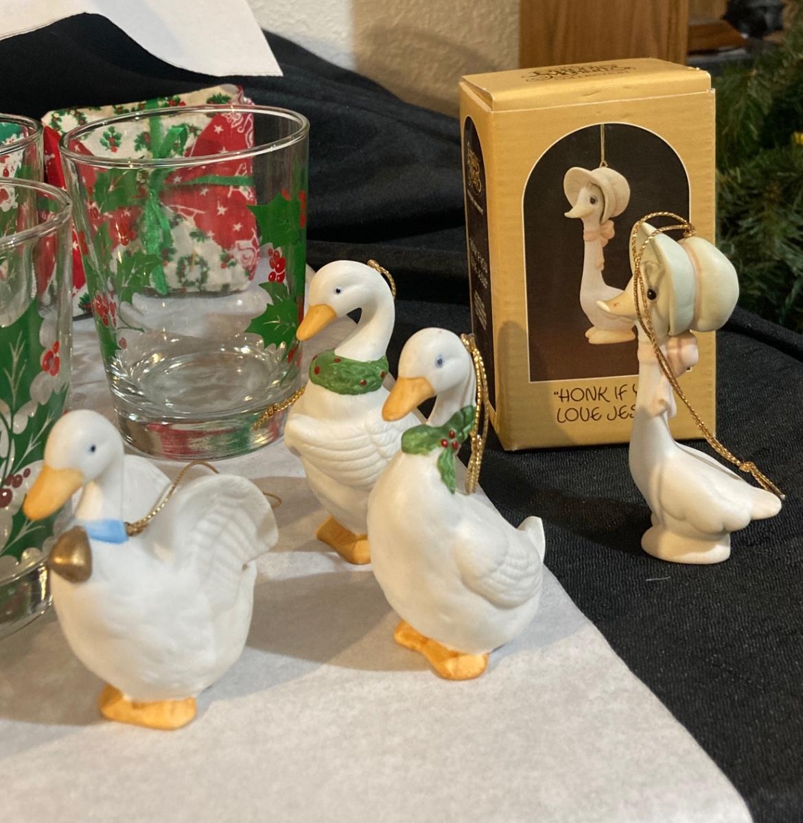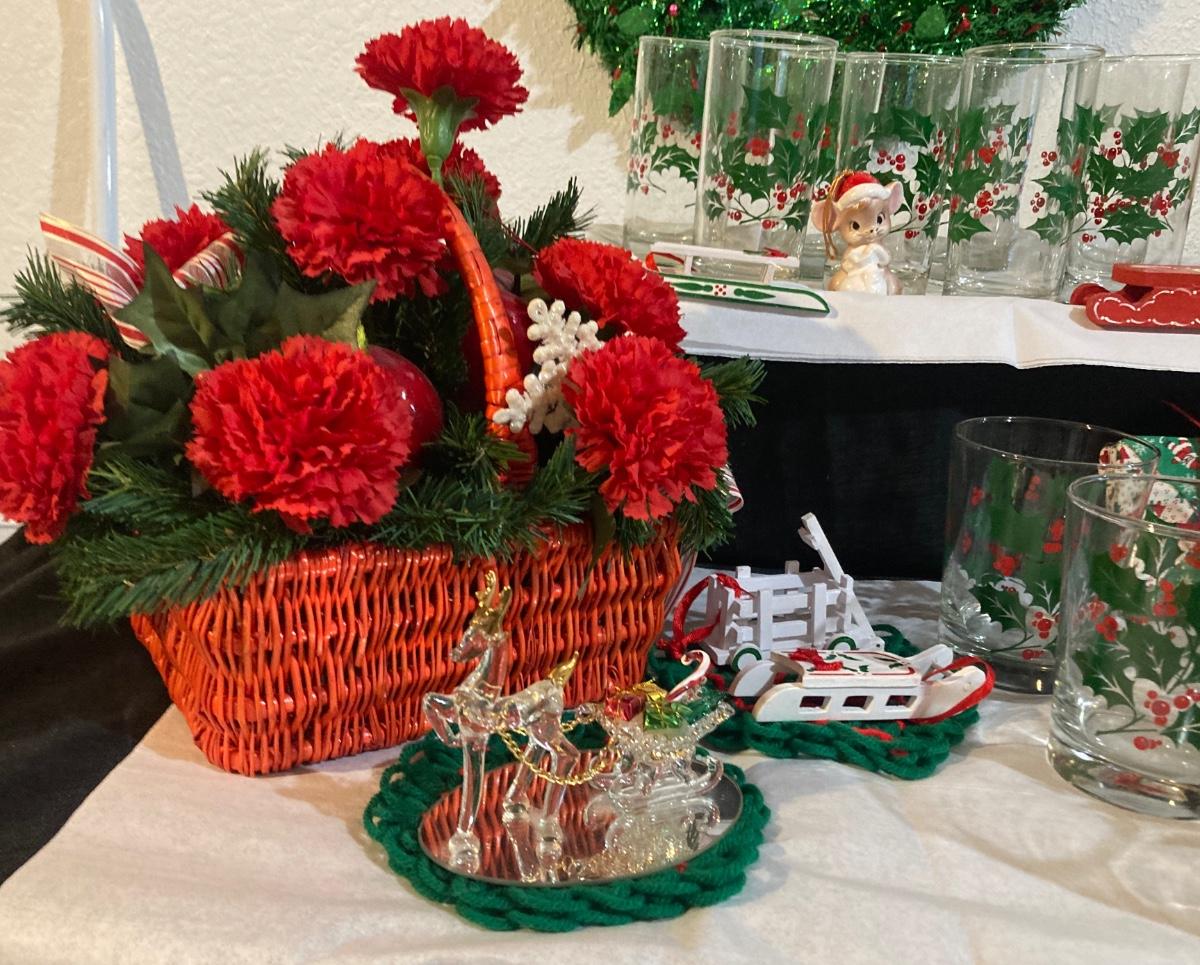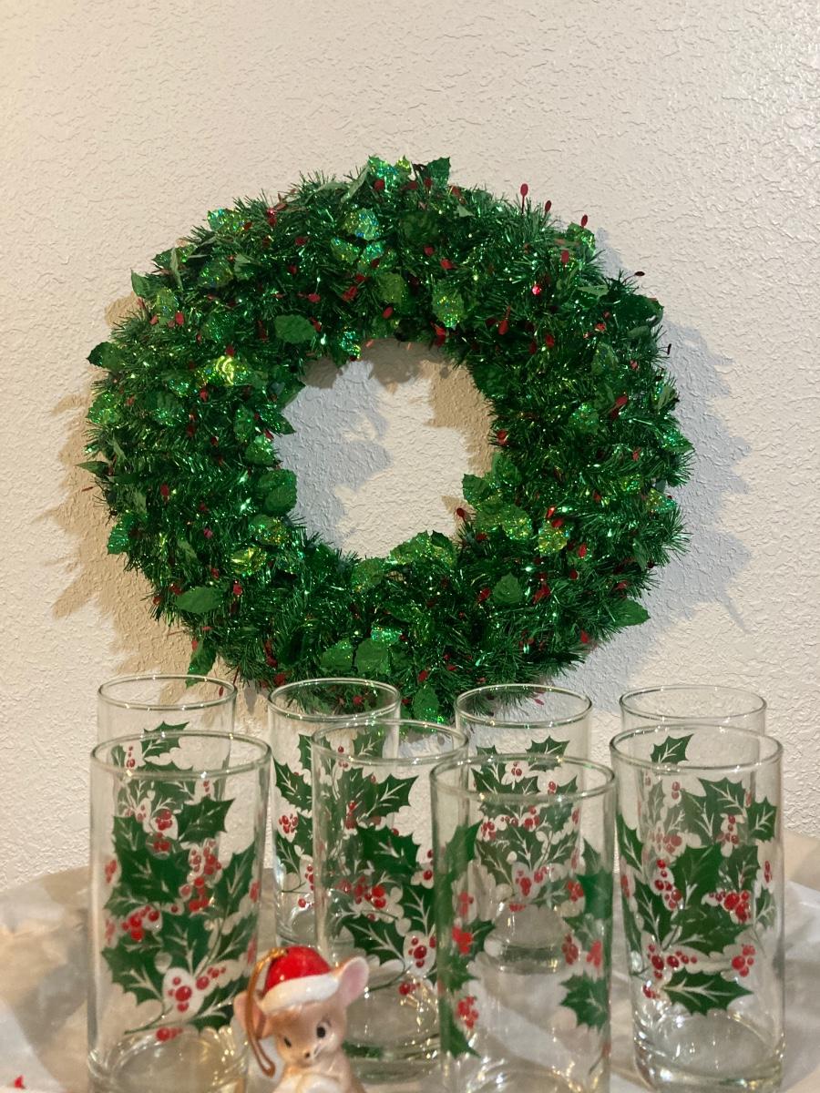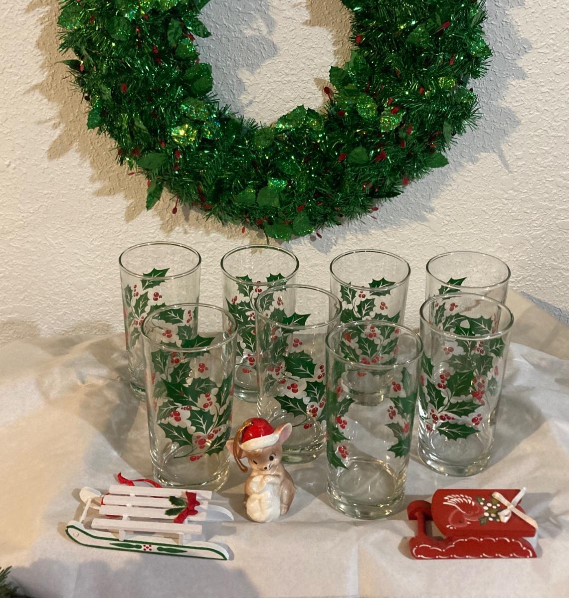 LOT 309 CHRISTMAS ¤¶ DRINKING GLASSES IN TWO SIZES AND A BIT OF HOLIDAY DECORATION (BASEMENT)