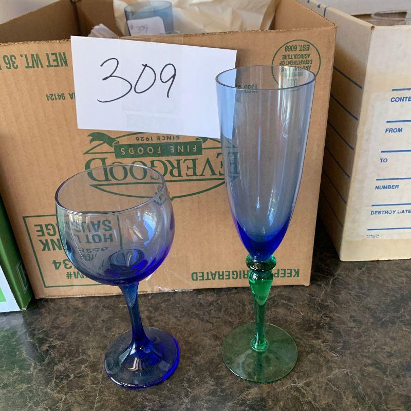 Lot 309. blue glassware and 6 small bowls