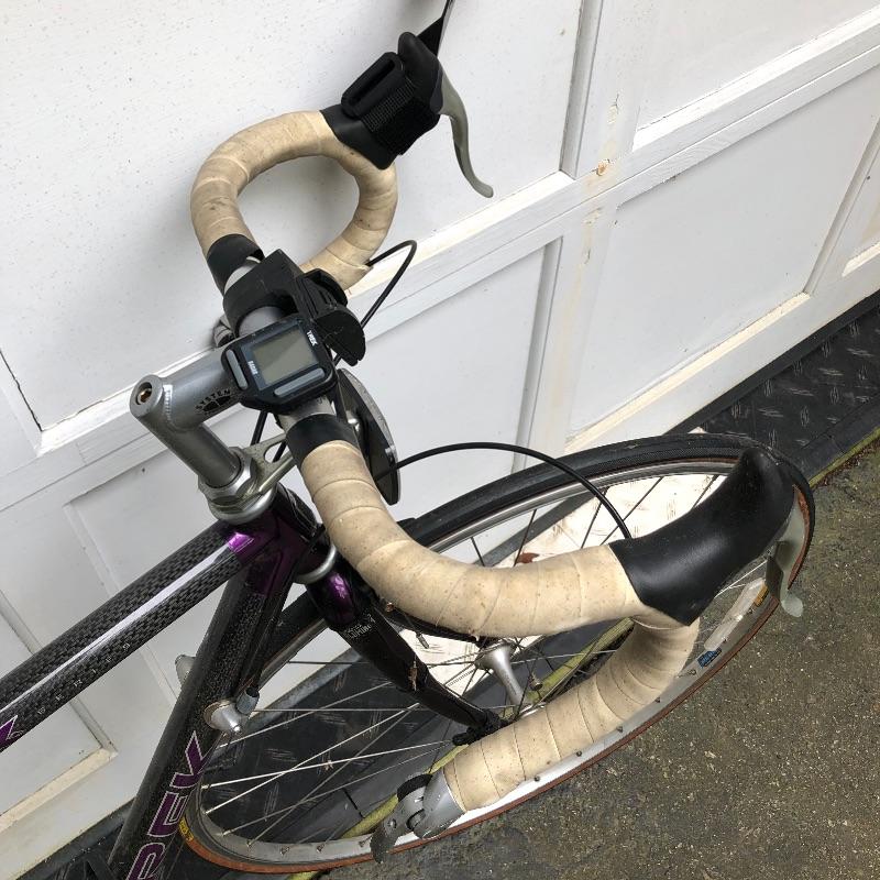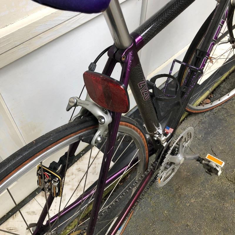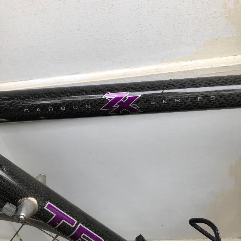 This twenty one speed bike will make you want to ride for miles and miles with its Shimano RX 100 derailleur and crank, Shimano 105 side pull brakes, Titan Tech wheels, Trek Carbon ZX series frame, NiteRider light with battery pack, Trek Radar bike computer and Shimano pedals. Bike measures 19” from center of crank to top of tube. Light and computer were not tested as batteries were old. The back light is missing it’s lens as you will see in the image; it would make sense to take it off and replace with a flashing LED light.