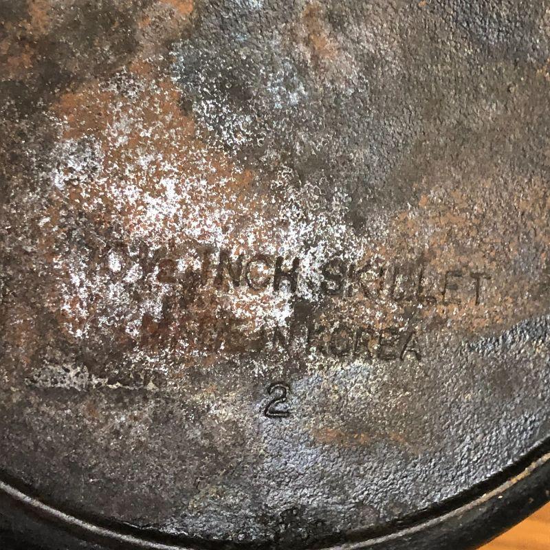 This frying pan was made in Taiwan and appears to need a cleaning and re-seasoning, but I don't use cast iron in my cooking so I really don't know.