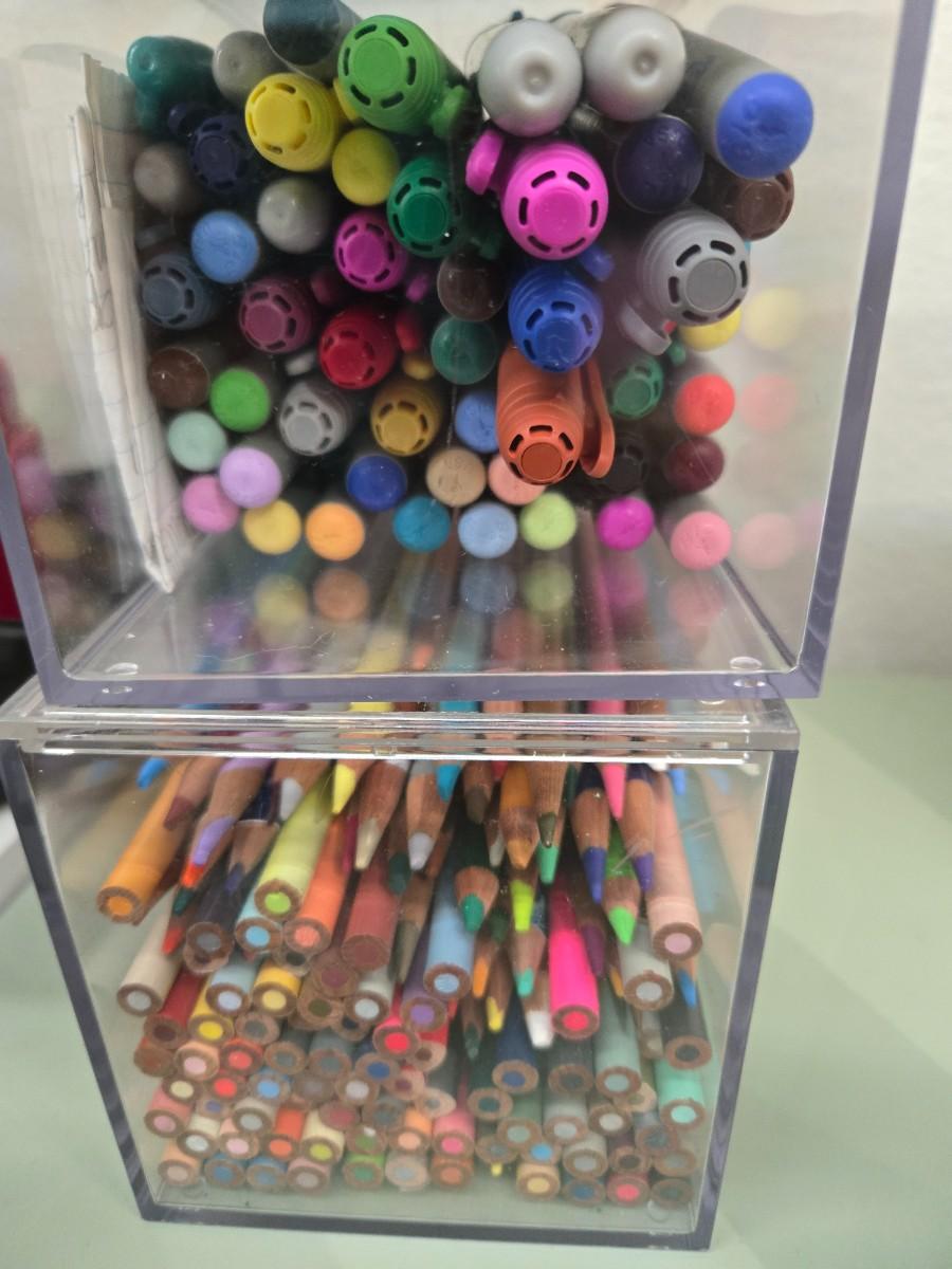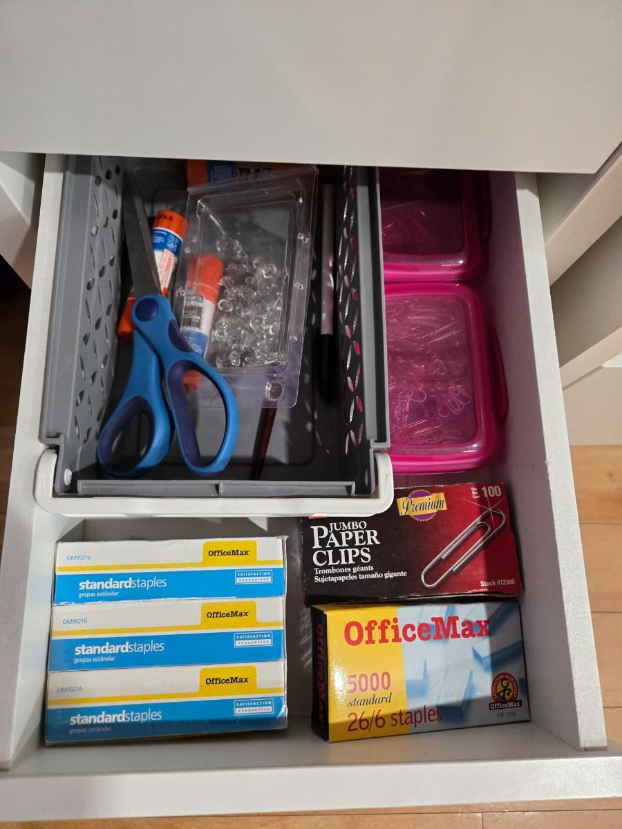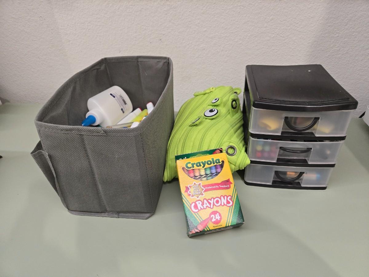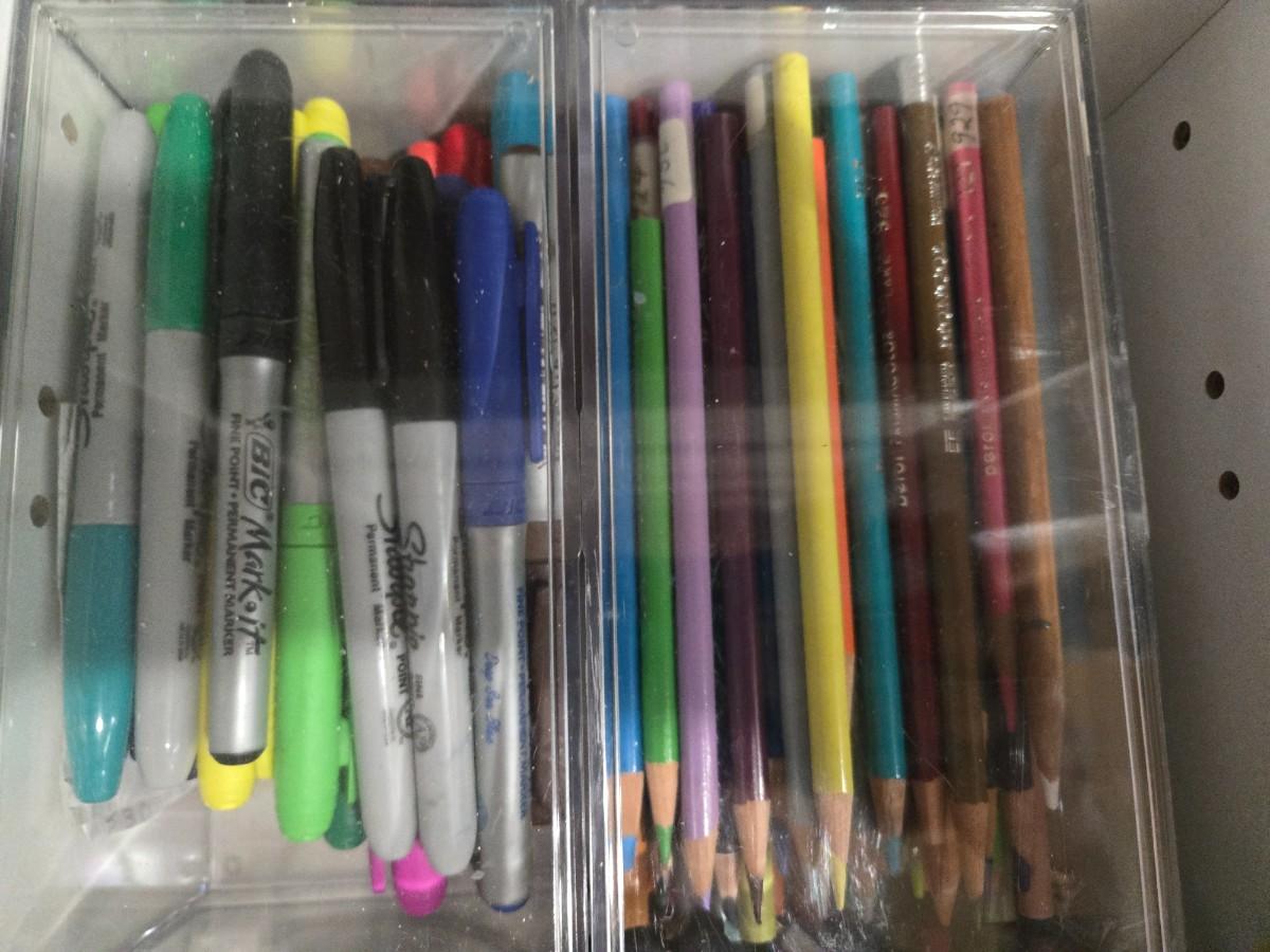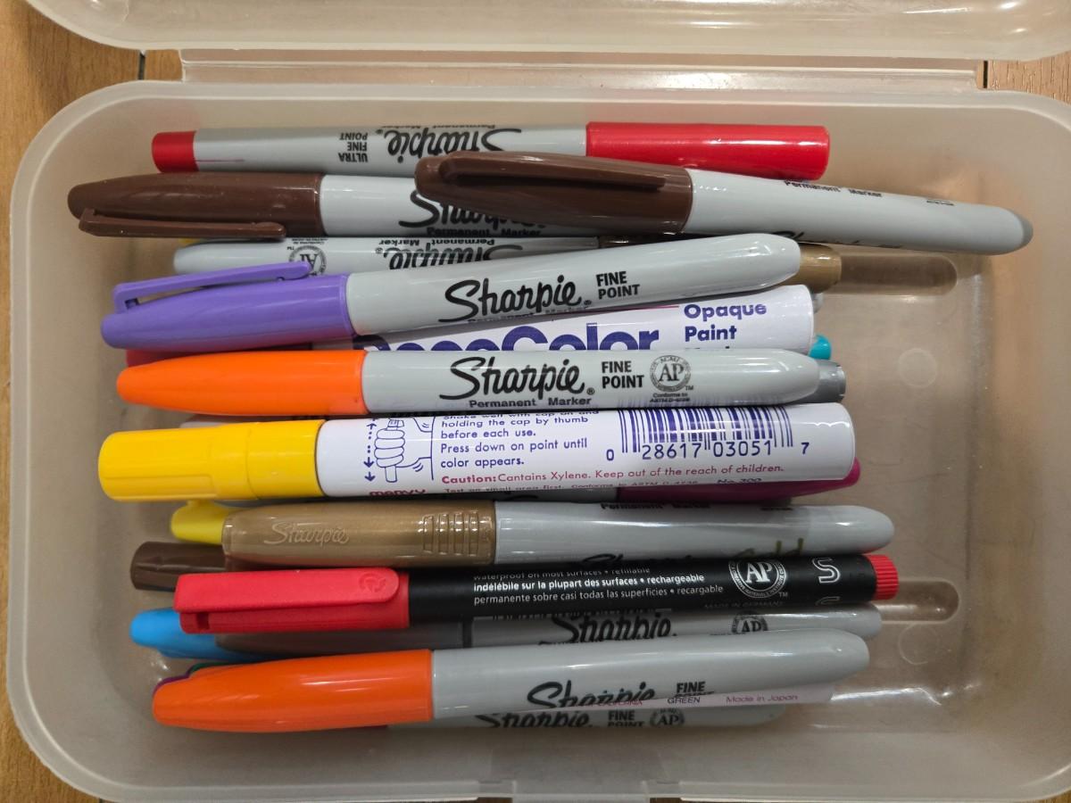 Lot of Office Supplies: Sharpies, Crayons, Paperclips, Stapler