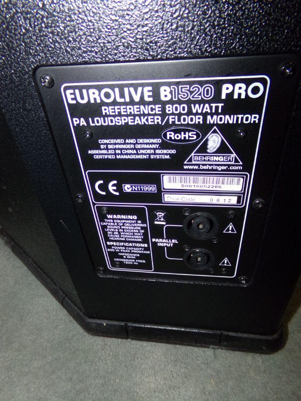 EUROLIVE B1520 PRO 800 WATT PA LOUDSPEAKER/FLOOR MONITOR