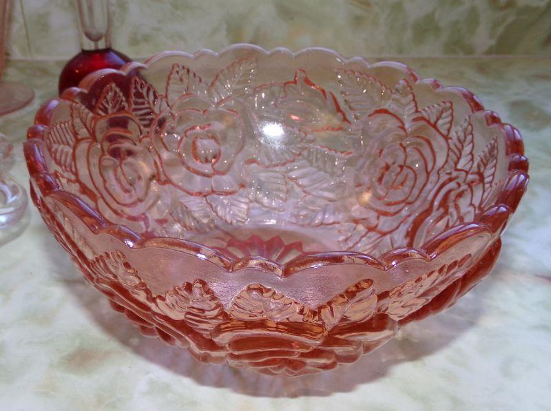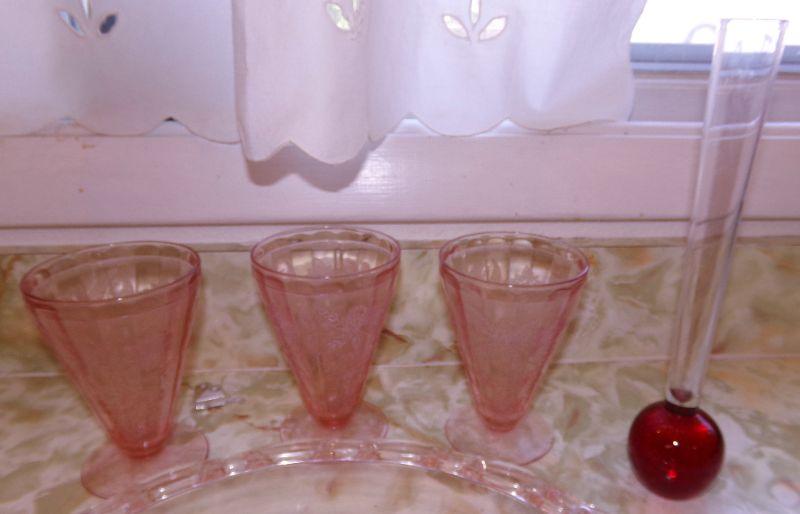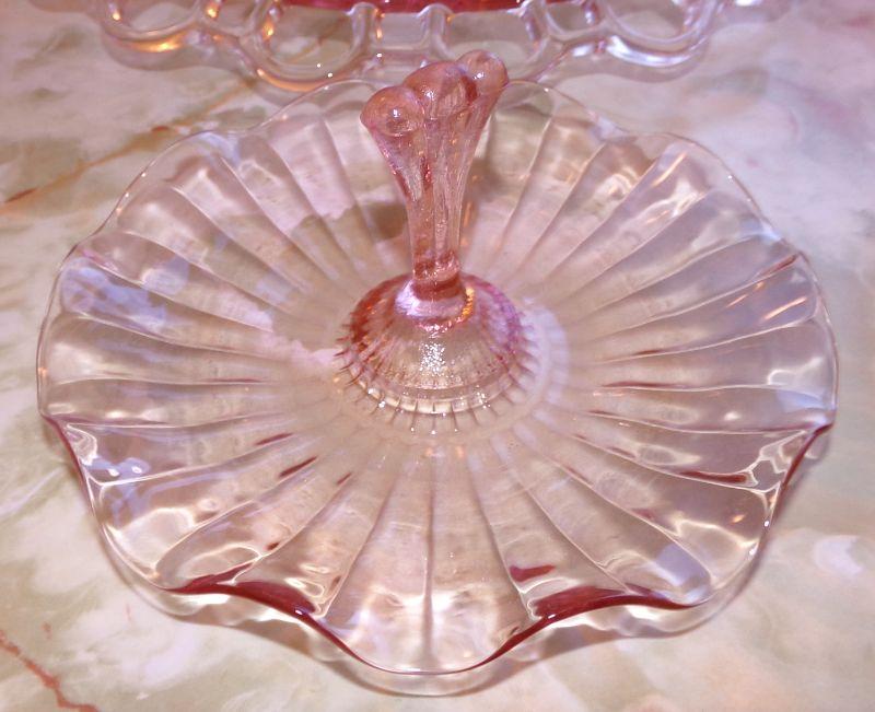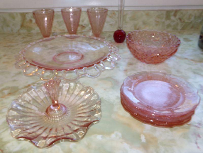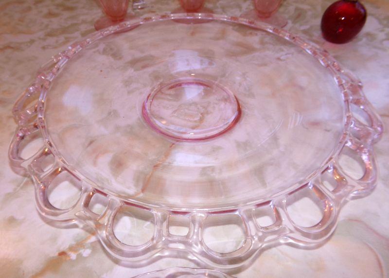3 SHERBERT CUPS, PLATE W/HANDLE, SALAD PLATES, SERVING BOWL, CAKE PLATE