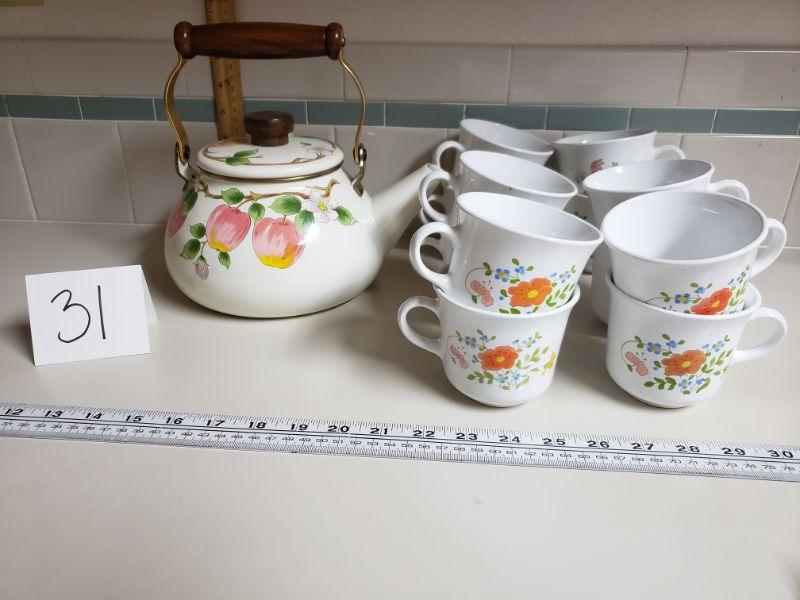 Lot 31: Tea Kettle and 12 Coffee Cups