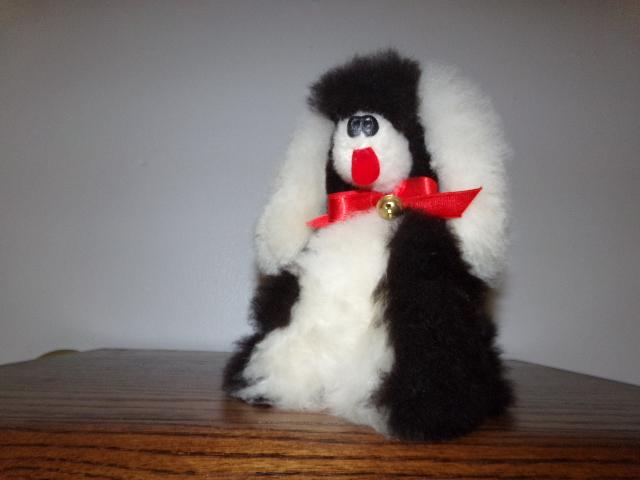 PLUSH DOG IS MADE OF ALPACA FUR AND HE IS SUPER SOFT