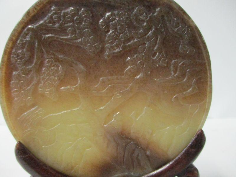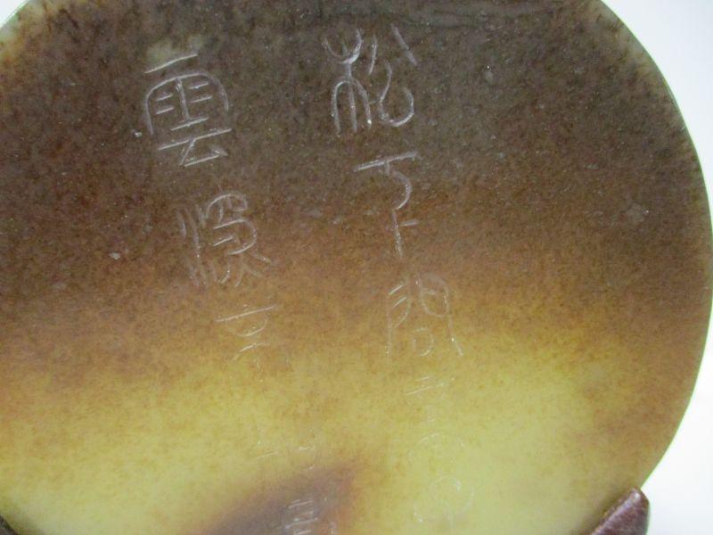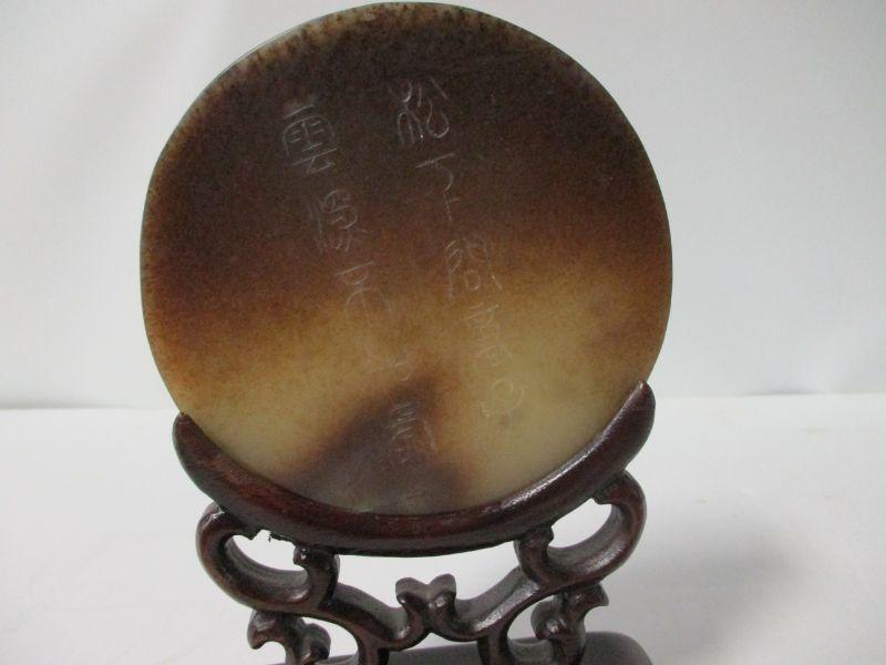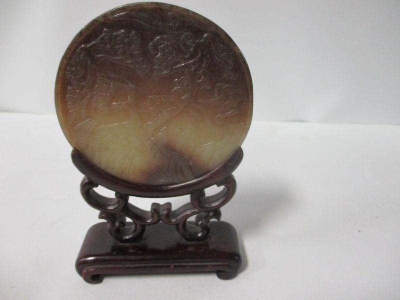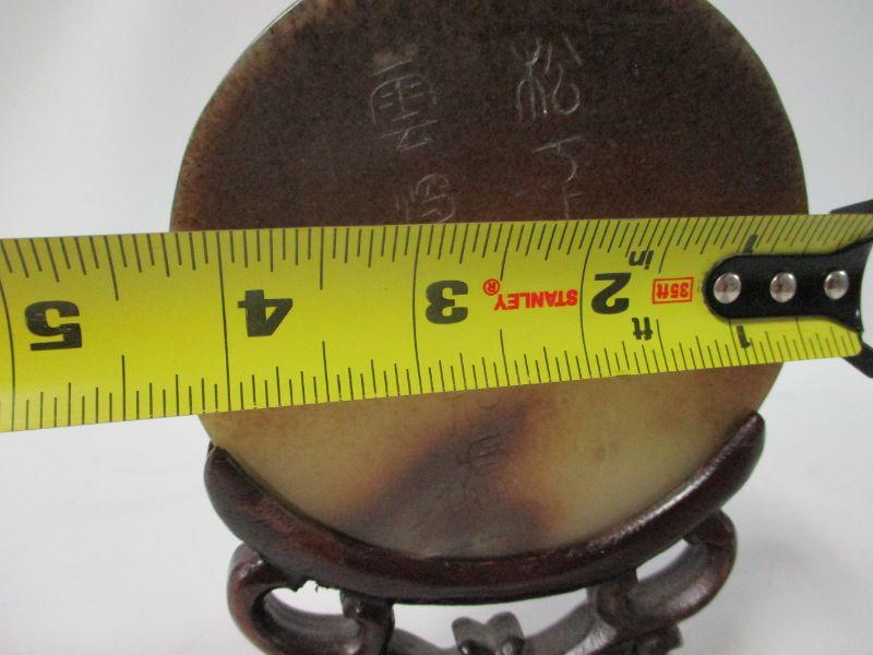 Lot 31 -Vintage Chinoiserie Scroll Glass Medallion with Rosewood Stand 4"