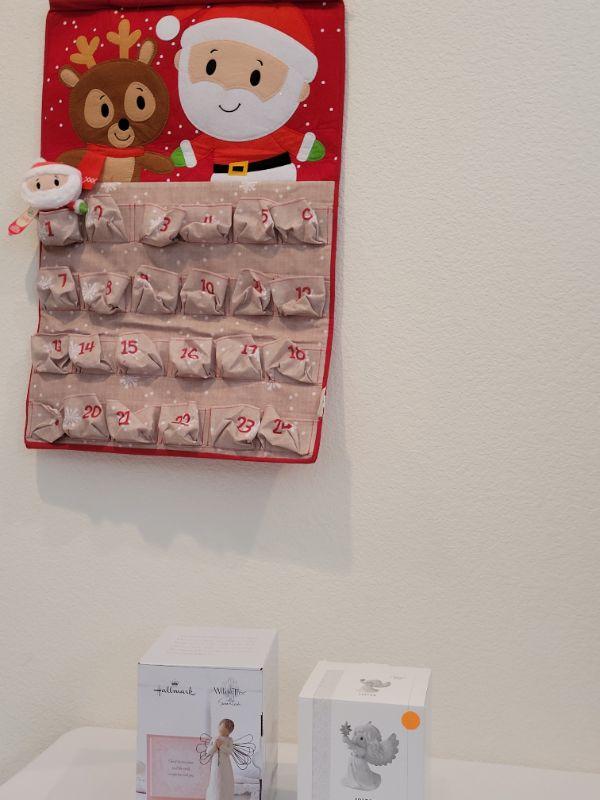 Lot 31: 26" Tall Soft Advent Calendar + Hallmark and Precious Moments Christmas Deco