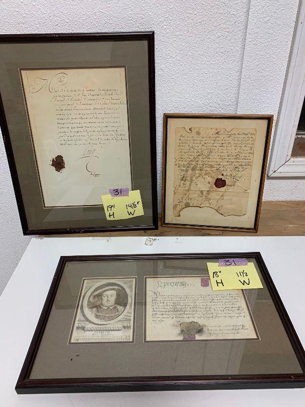 3 Antique documents/indentures 1) indenture dated August 22, 1833, 2) Henry VIII, 3) Le Comte de Conway