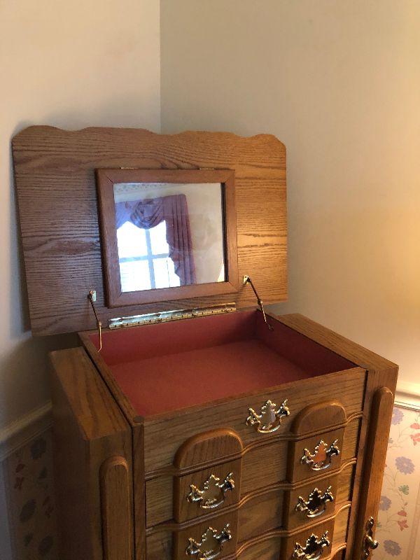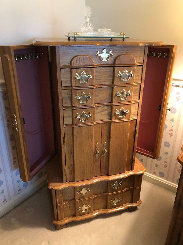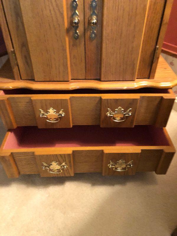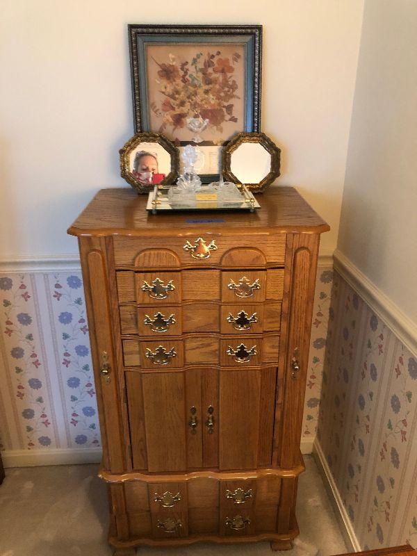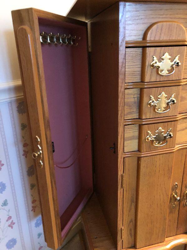 Large Standing Oak Jewelry Chest (23.5" x 16" X 22 - Closed), Wall Art, Mirrors and Vanity Items,