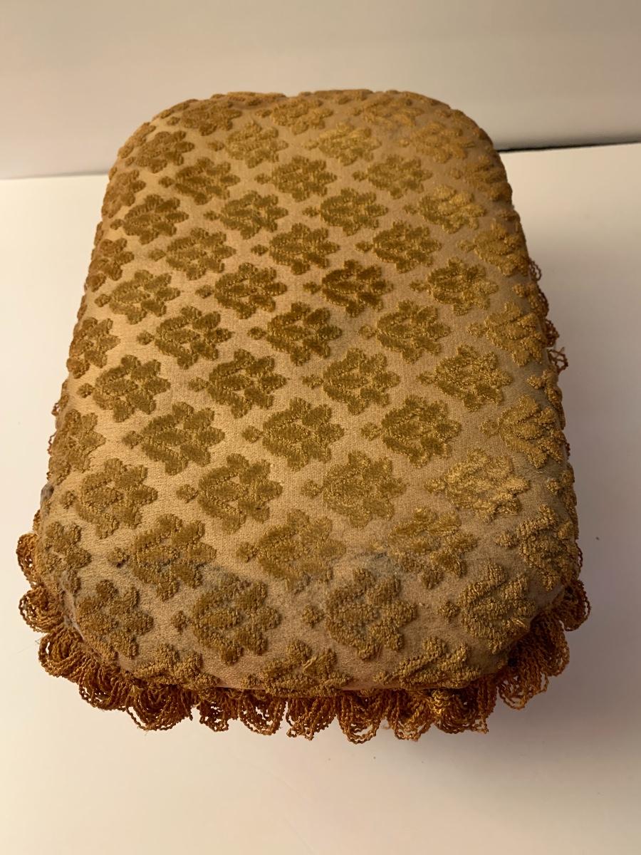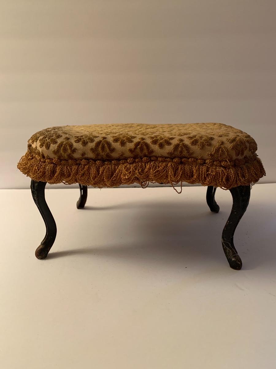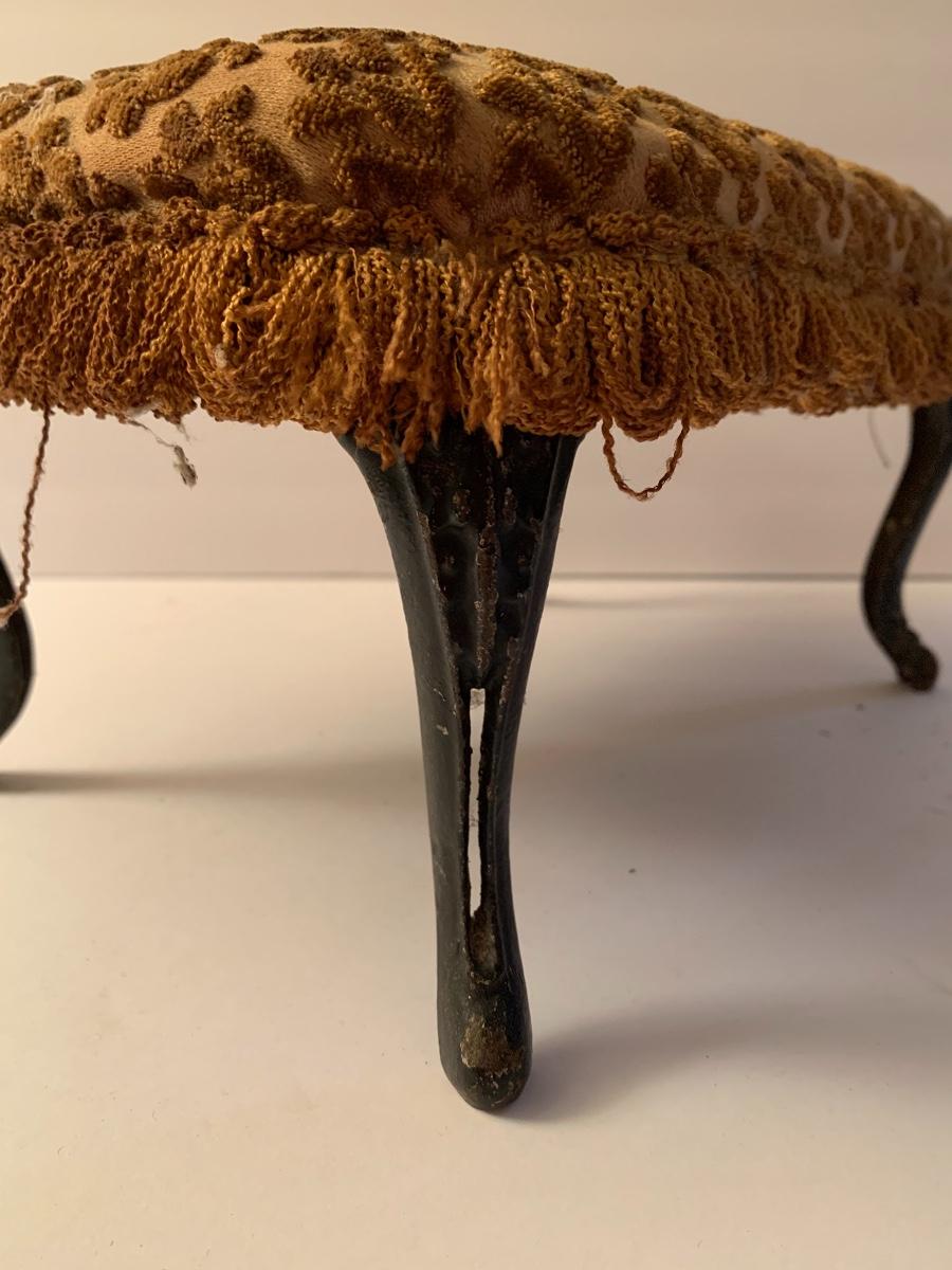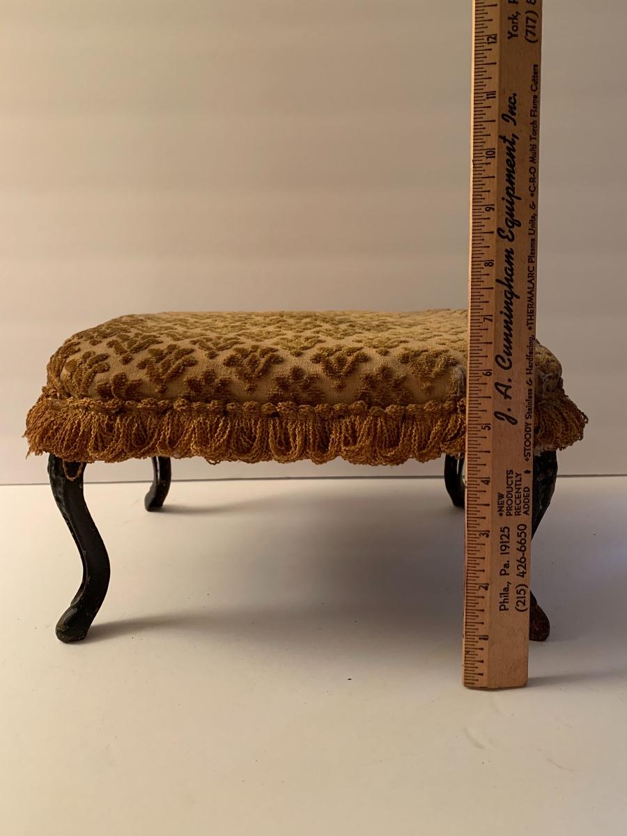 Lot 31: Weir Stoneware Crock, Vintage Cast Iron Pig Bank, and Antique Foot Stool