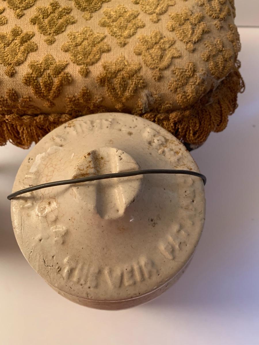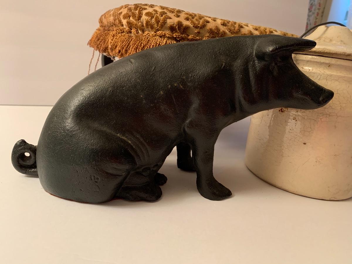 Vintage cast iron piggy bank, The Weir antique stoneware crock with original bale wire covering, and antique wood footstool with wood balls on the bottom. Please see all pictures for content of the lot, condition of the lot, and measurements if taken. Pictures are the best representation of the items listed and items are untested unless indicated in description. Thank you for looking and have fun bidding!