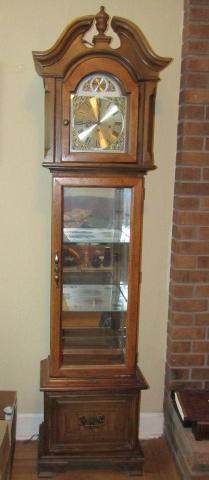 LOT 31 WIND UP CLOCK IN DISPLAY CABINET
