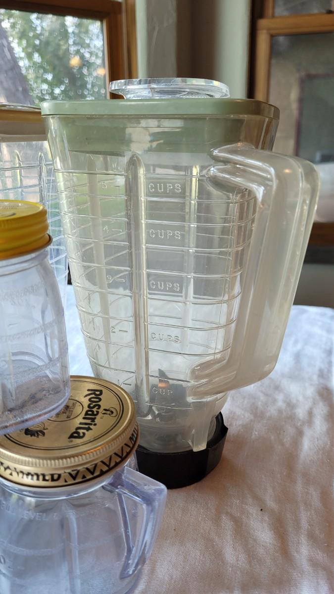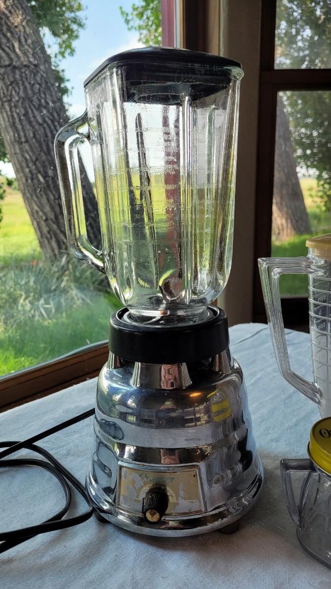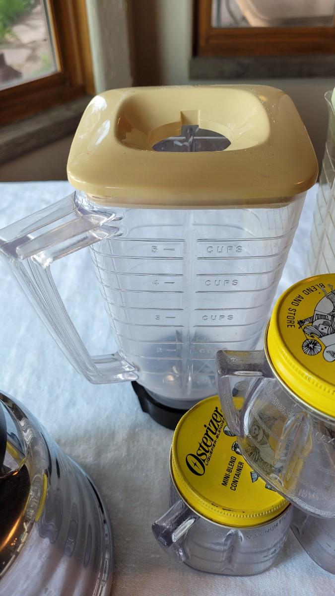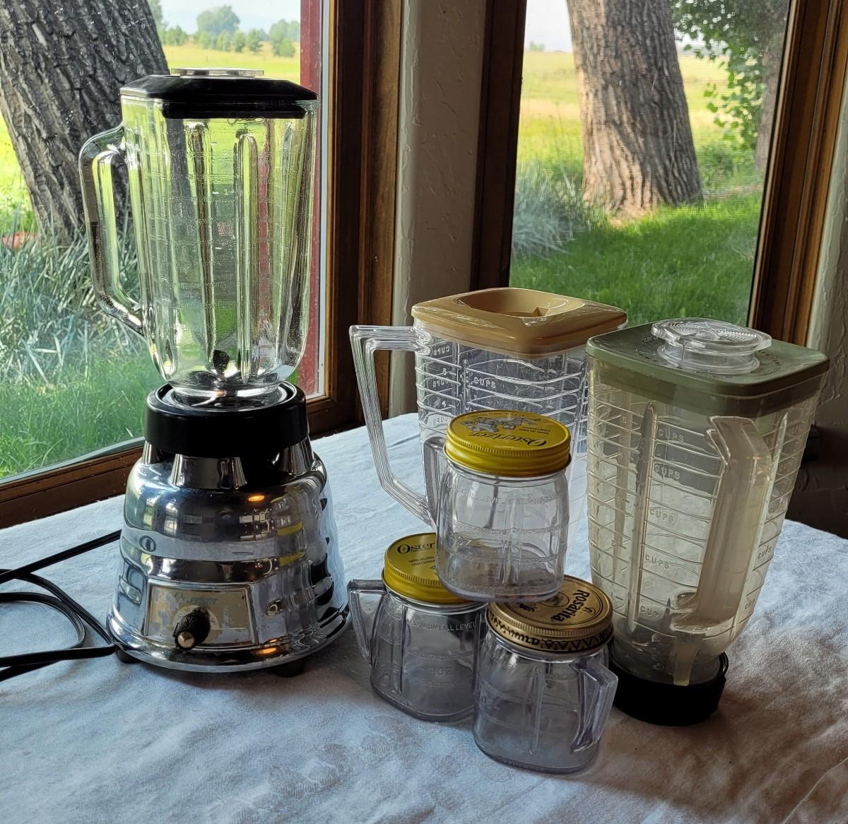 Lot 31: Vintage Oster Silver Blender with 2 extra Pitchers & 3 Jars