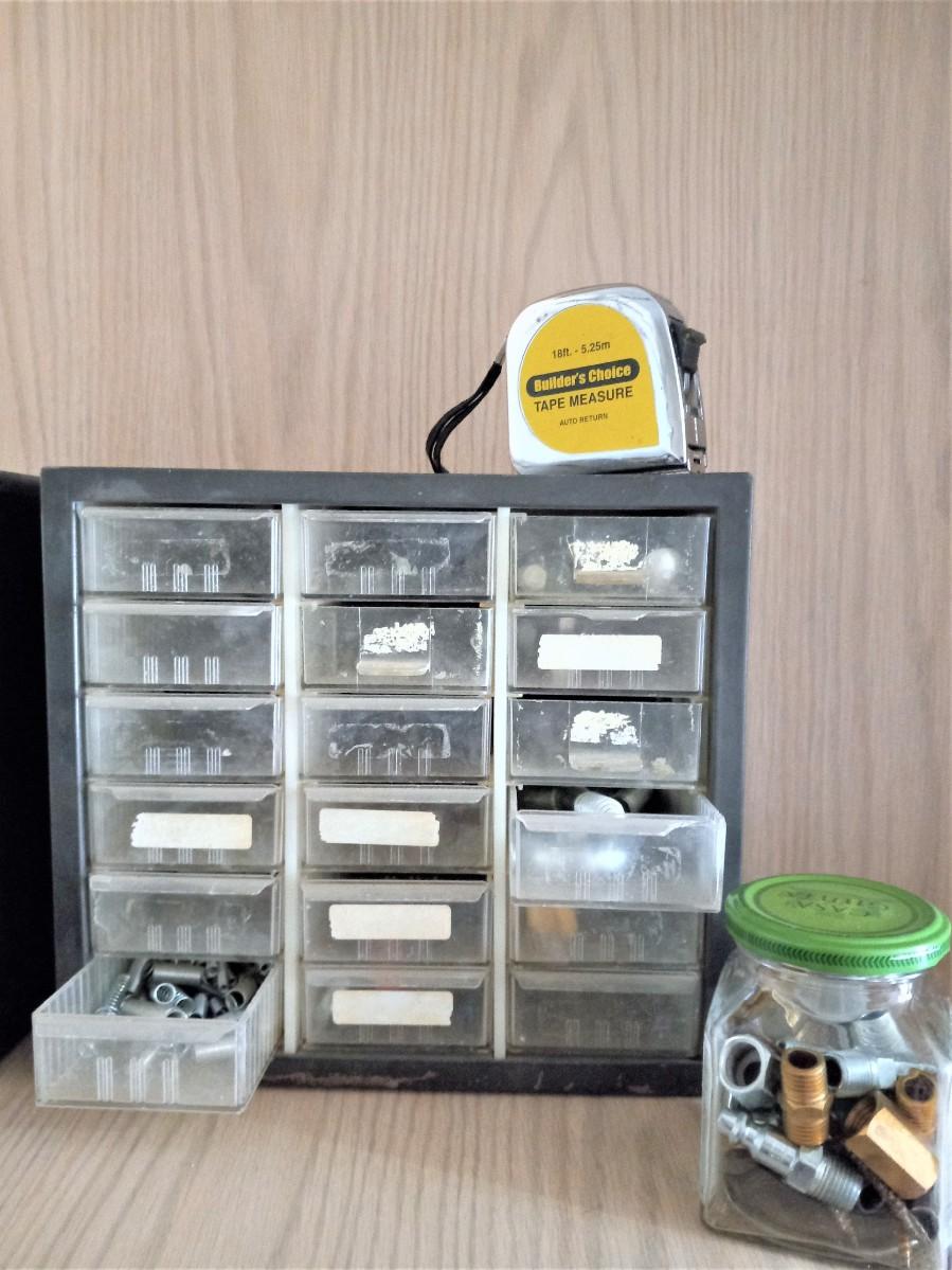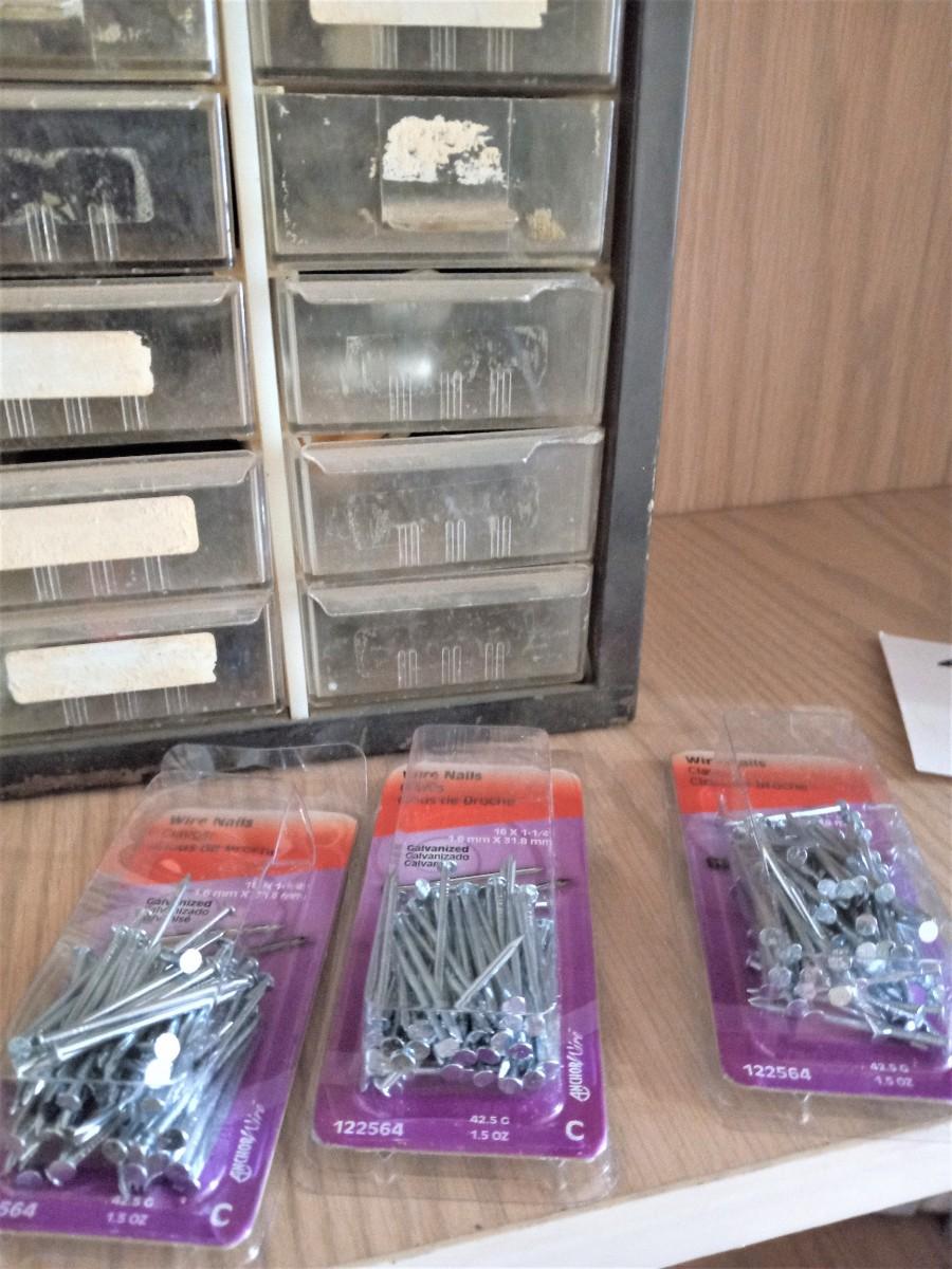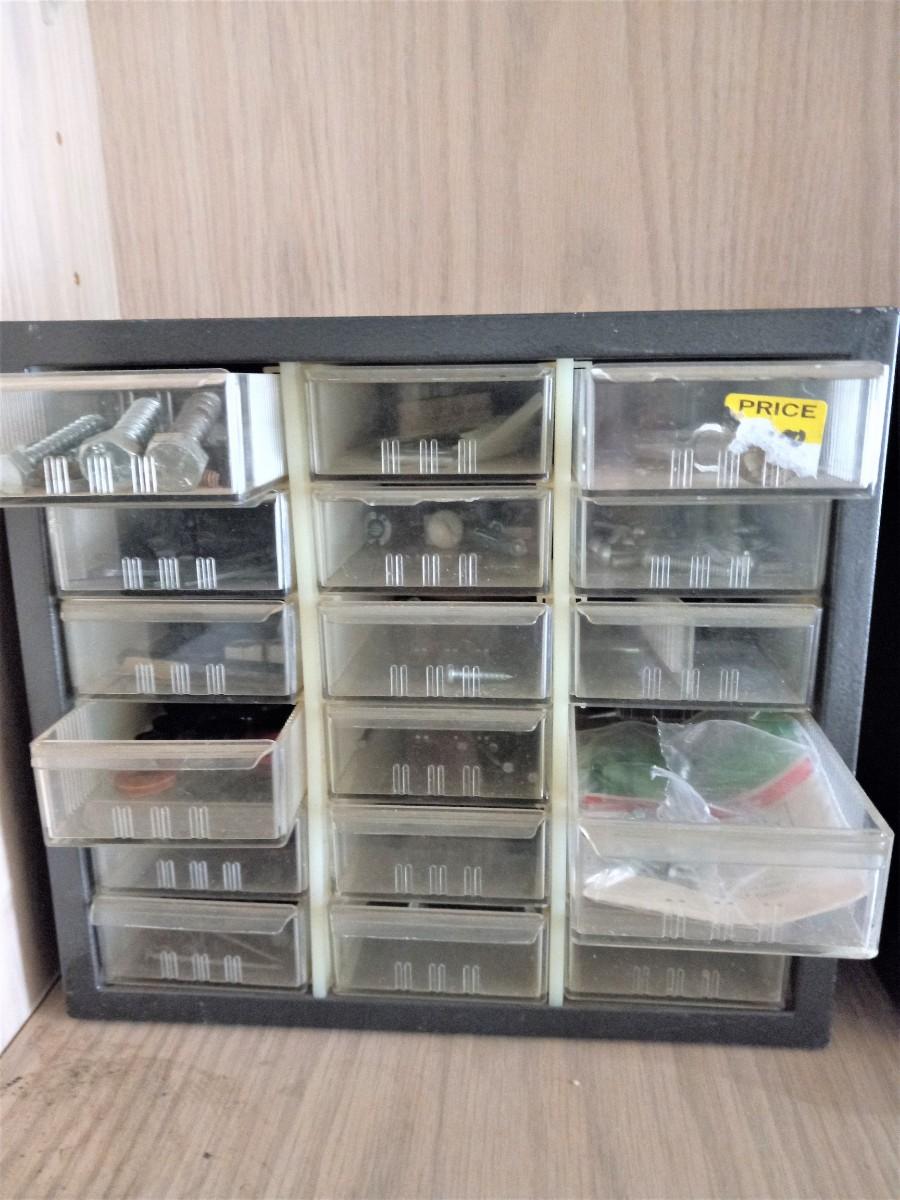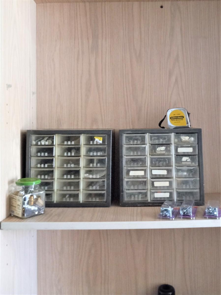 LOT 31  TWO HARDWARE ORGANIZER FULL OF HARDWARE AND MORE