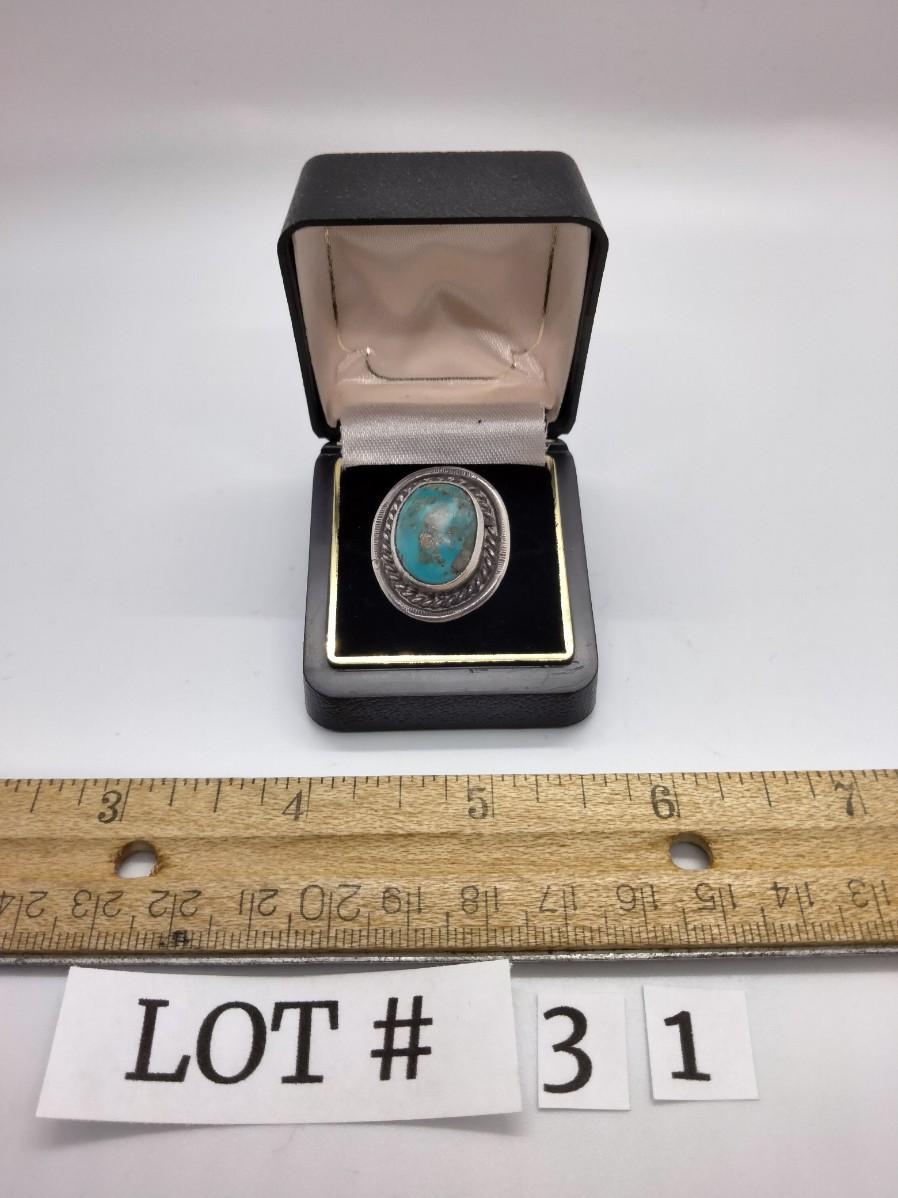 Lot 31 - Old Pawn Turquoise Sterling Ring