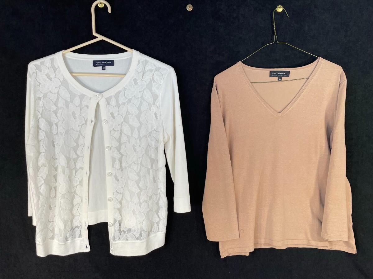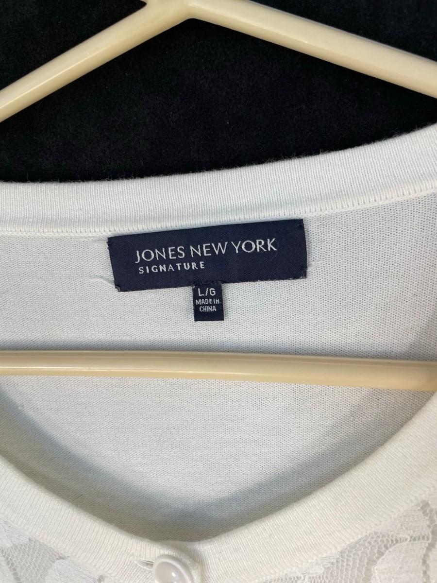 White JNY Signature size large, 54% cotton, 25% modal, and 21% nylon