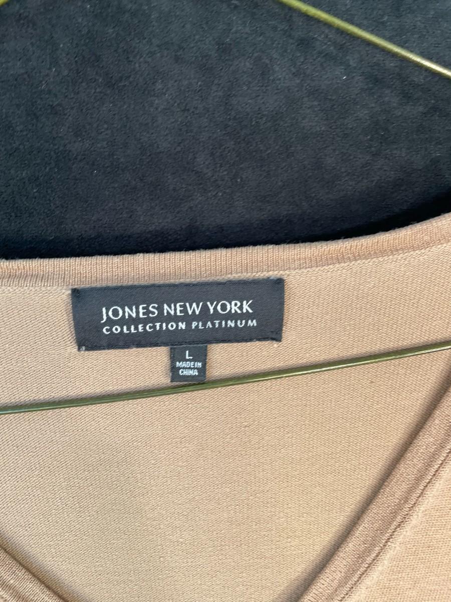 Beige "Collection Platinum" v-neck size large, 59% silk, 27% nylon, and 14% viscose