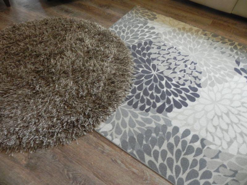 2 RUGS, DARK BROWN SHAG MEASURES 57" ROUND AND FLOWER PETALS 83"X59"