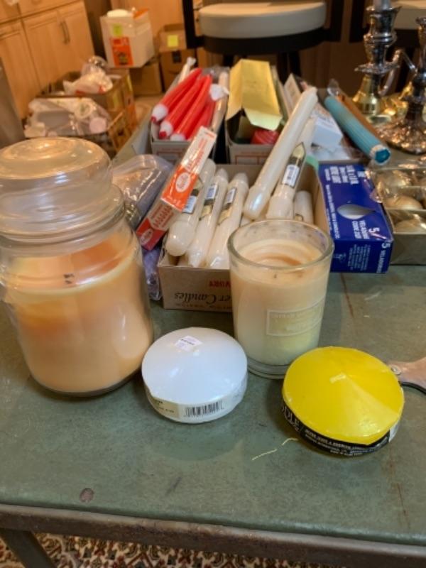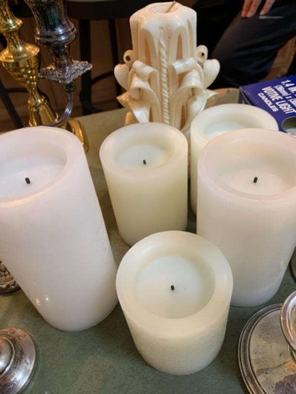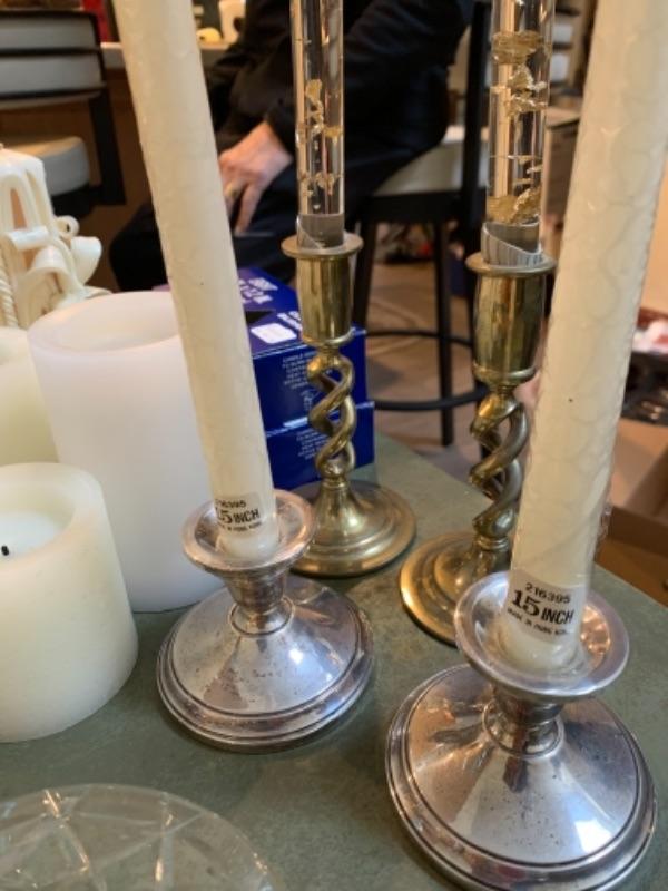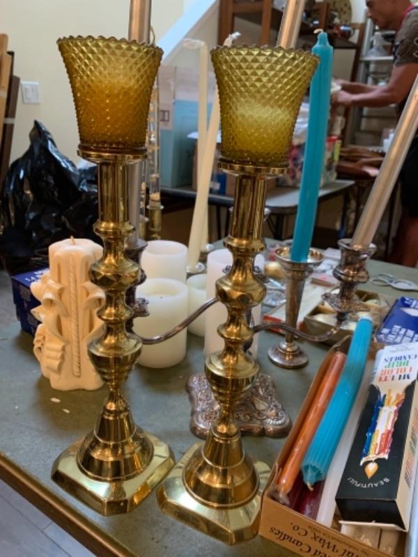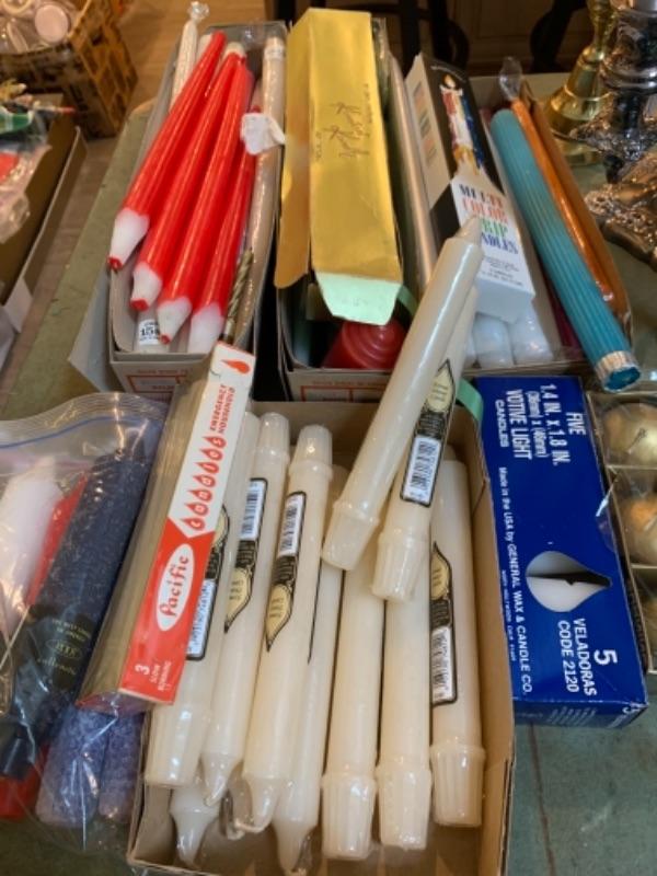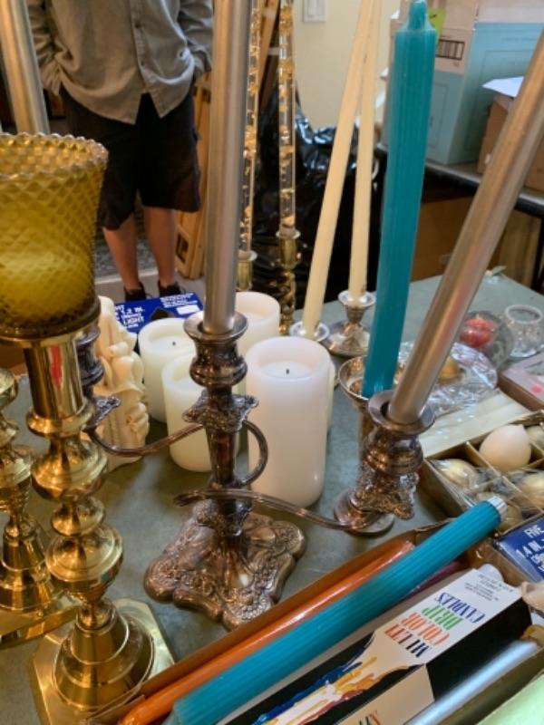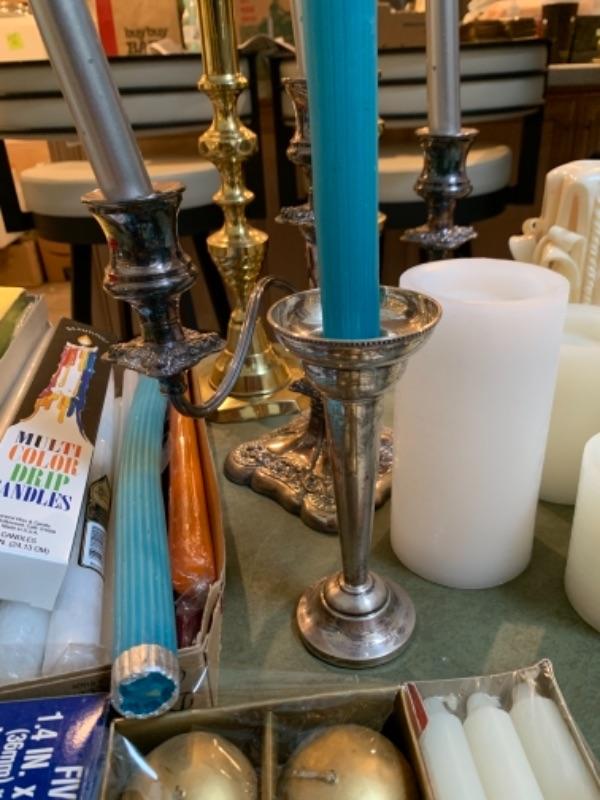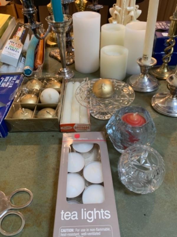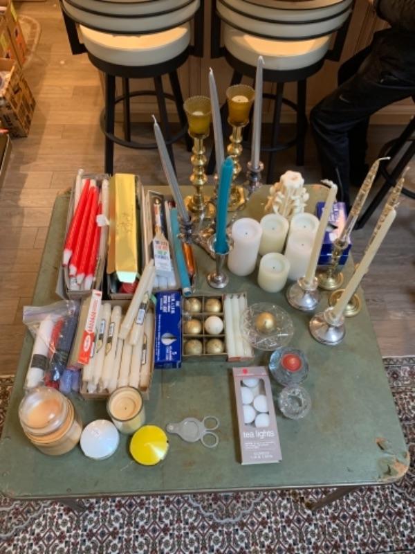 Lot 31. Assortment of wax and battery-operated candles and candlesticks--$60