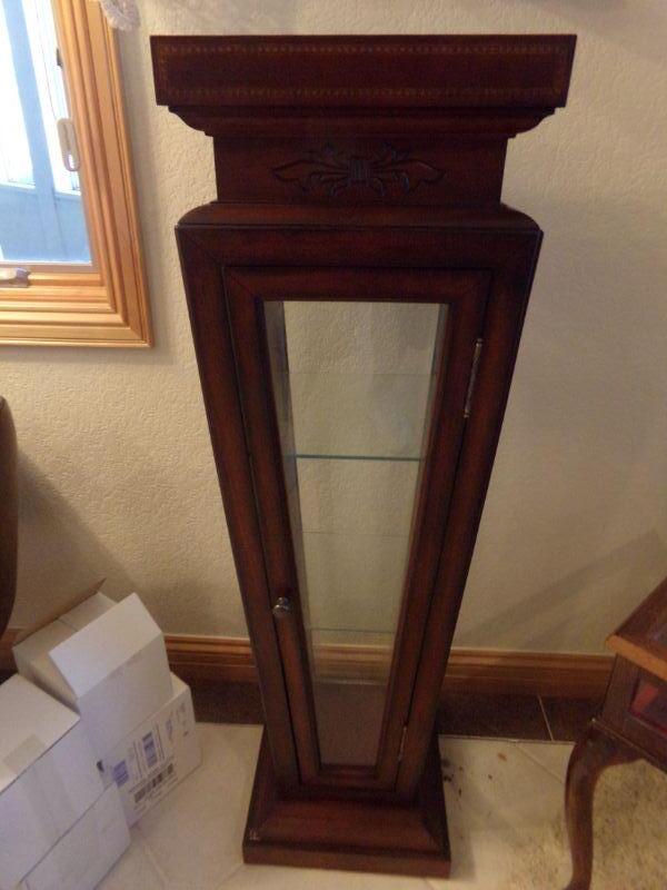 LOT 31 PILLAR DISPLAY CASE WITH CARVED DESIGN