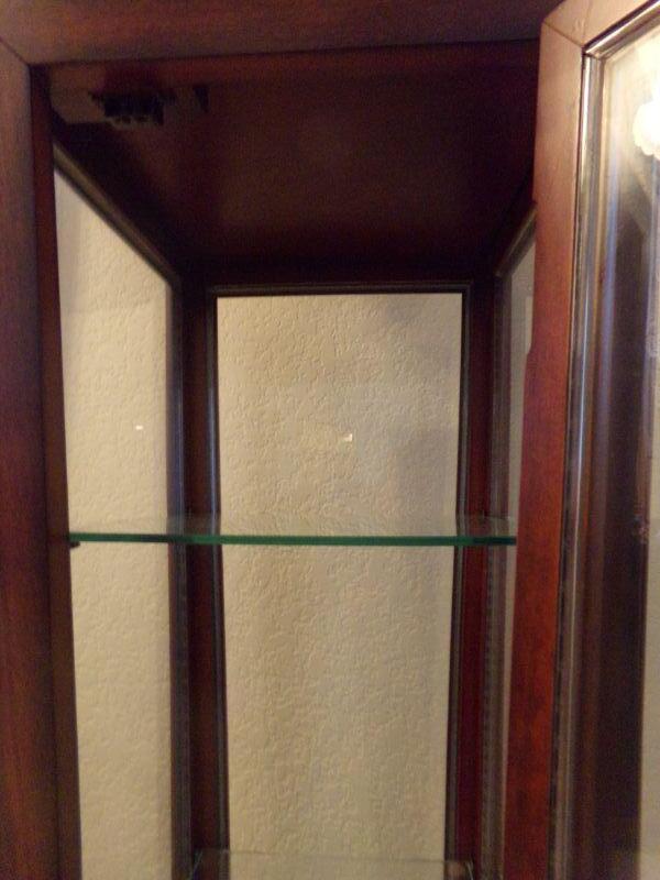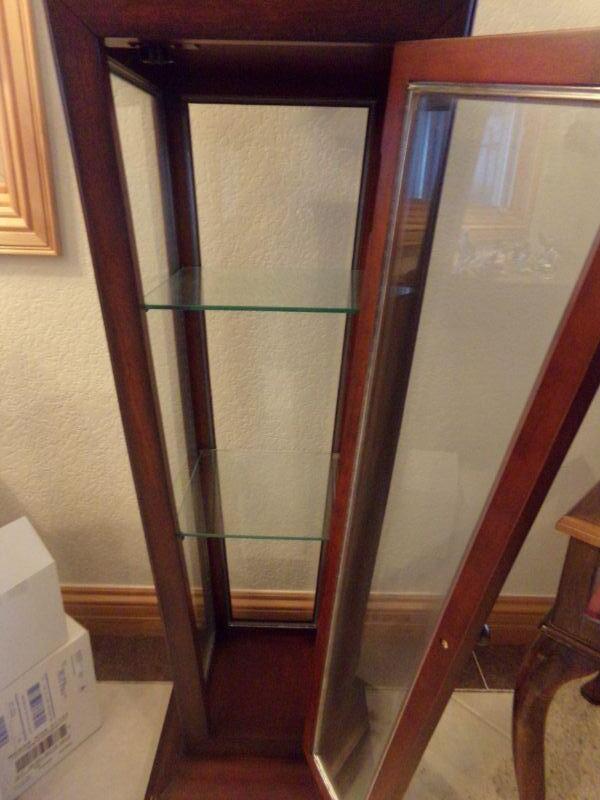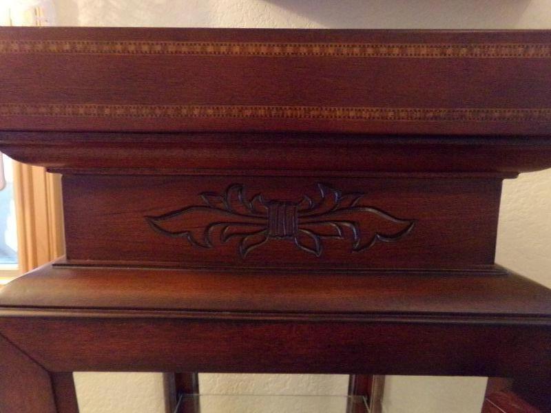 PILLAR SHAPED DISPLAY CASE WITH GLASS SHELVES AND CARVED DESIGN