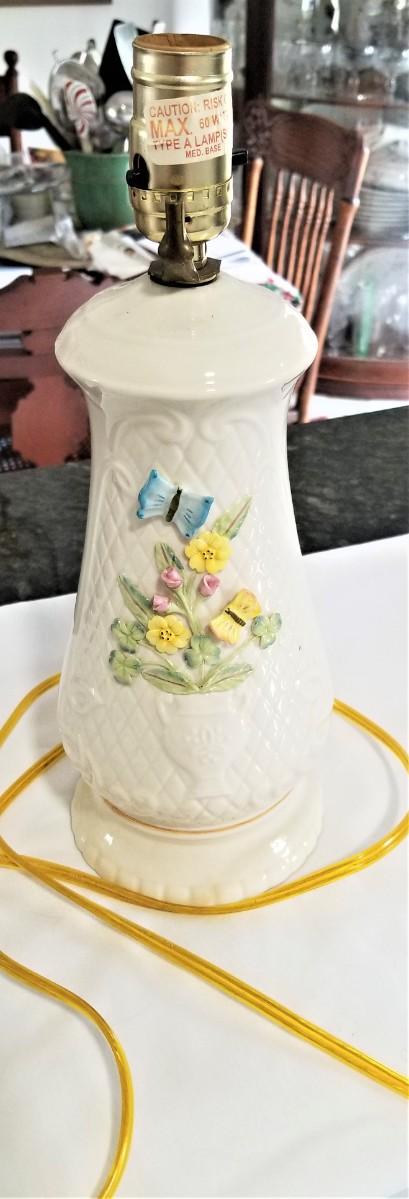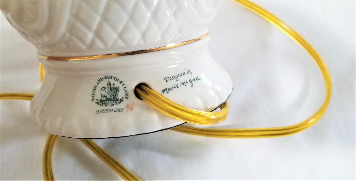 Collectible Belleek Irish Porcelain table lamp - special edition designed by Marie McGrellis, dated 2003. Fresh from a New Orleans estate. No shade. Gently used - we tested a bulb in it and it works fine. Measures 8 inches tall to the top of the base. Great condition - I don't see anything wrong with it. A Belleek collector will LOVE this.