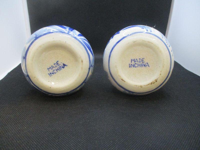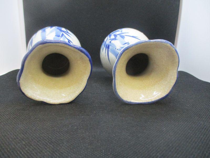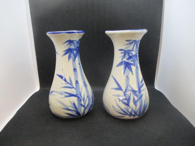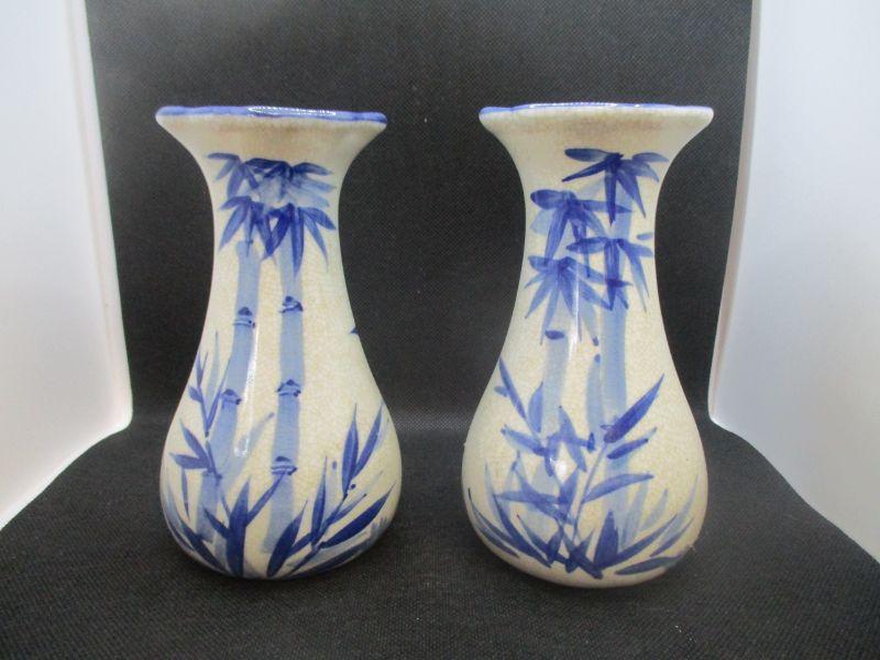At first, I thought that these were saki pitchers because the lip is shaped that would make pouring easier, but the shape of the rest of the piece makes me think that these are just pretty matching vases. They have an "antiqued" finish and each stand 6". I didn't find any issues with either.