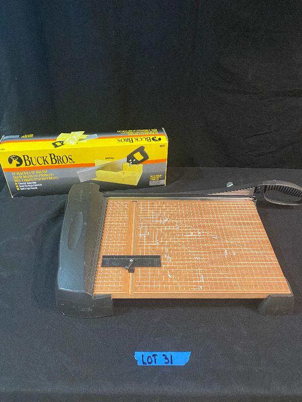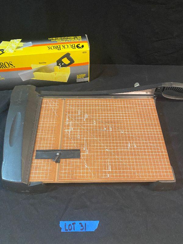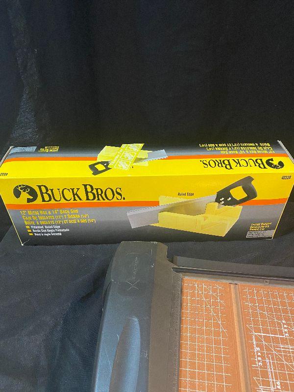 Buck Brothers mitre box /14' back saw and paper cutter by X-Acto