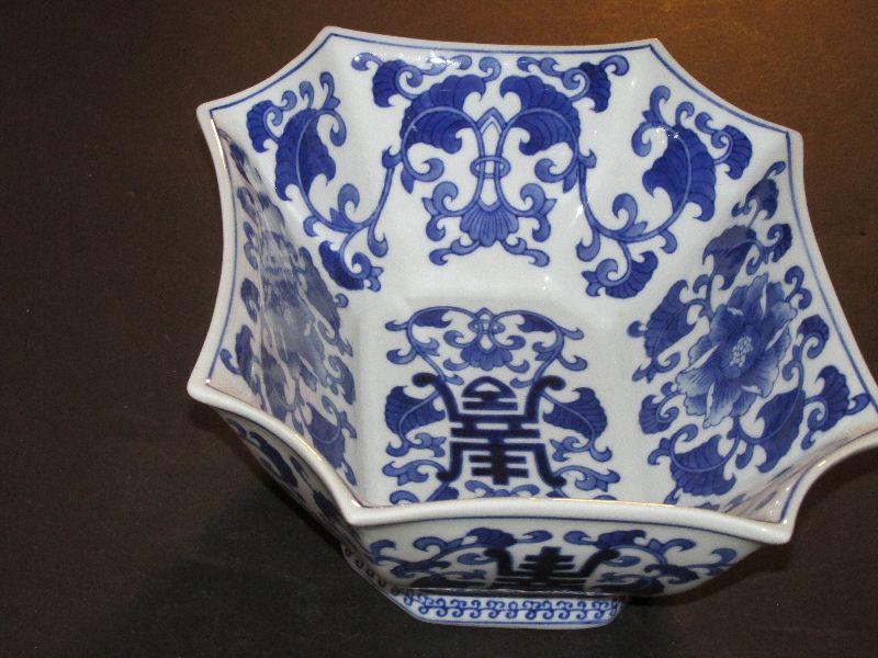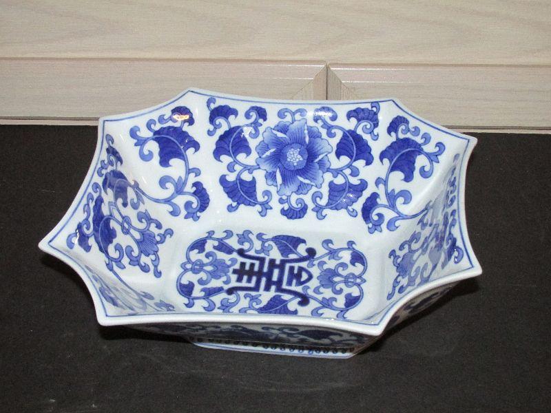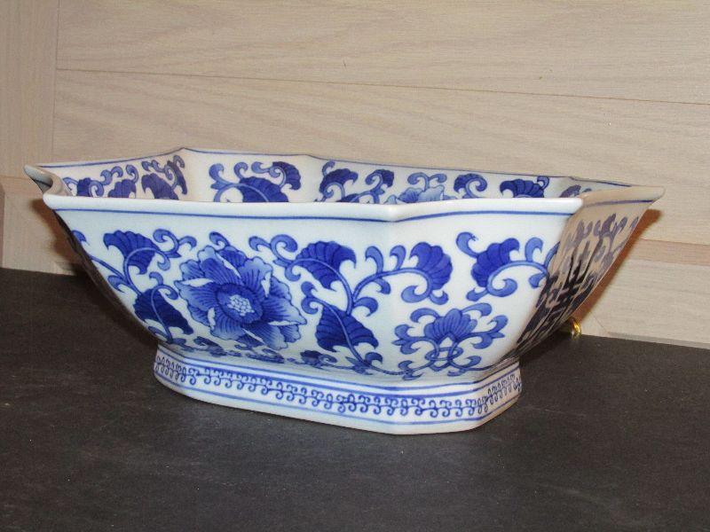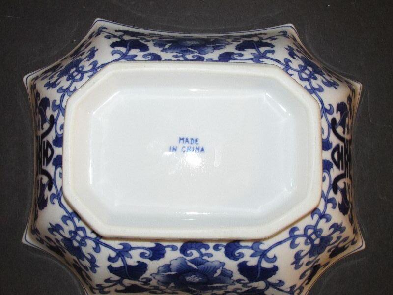 Porcelain Chinese Fruit Bowl. Juangzhen I believe. Length: 10" Width: 8.5" Height: 3.75". No chips or cracks.