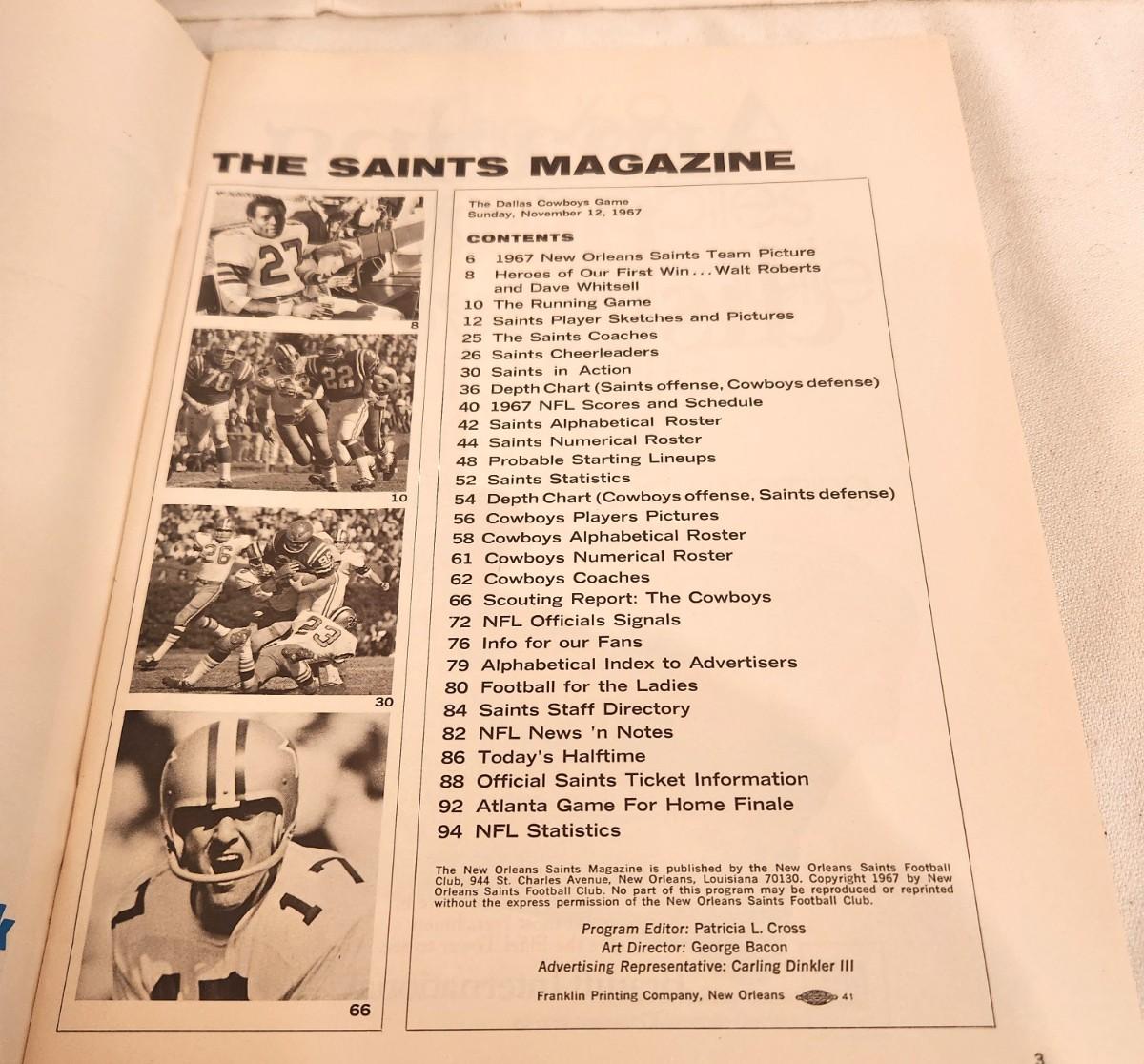 Lot #31 First year (1967) New Orleans Saints Football Program - Saints vs. Cowboys - Tulane Stadium