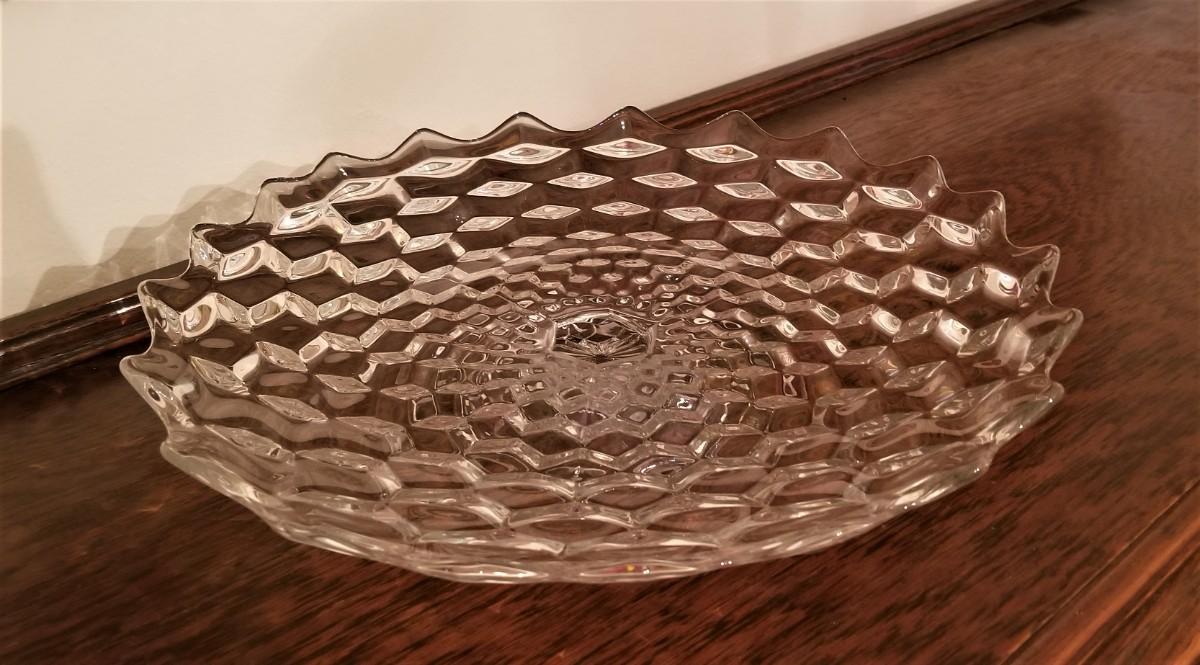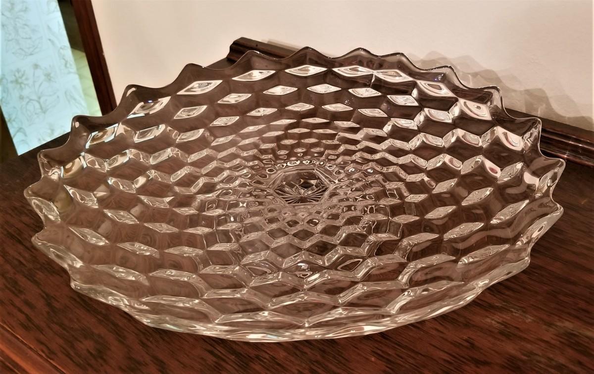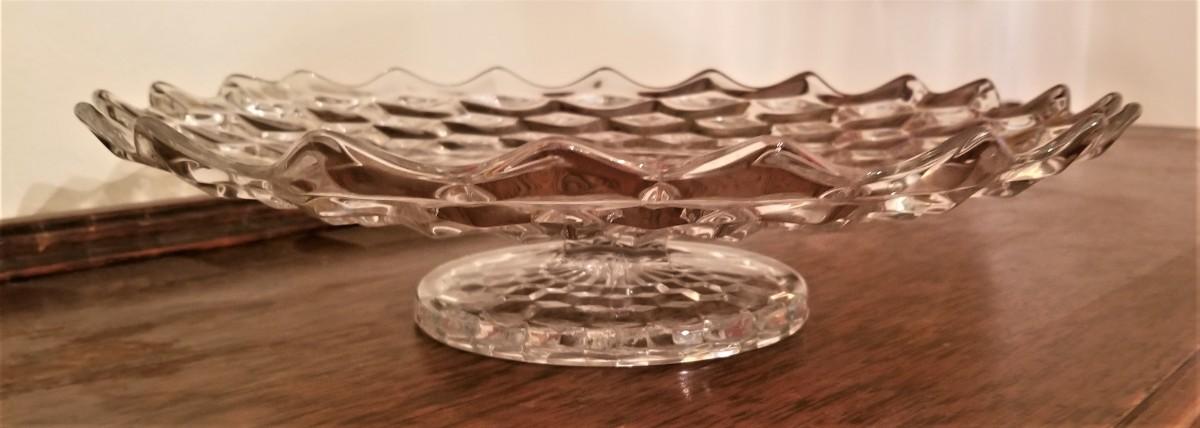 Lovely Fostoria (3 line mold) footed LARGE platter - good condition. 17" across, 4" tall.