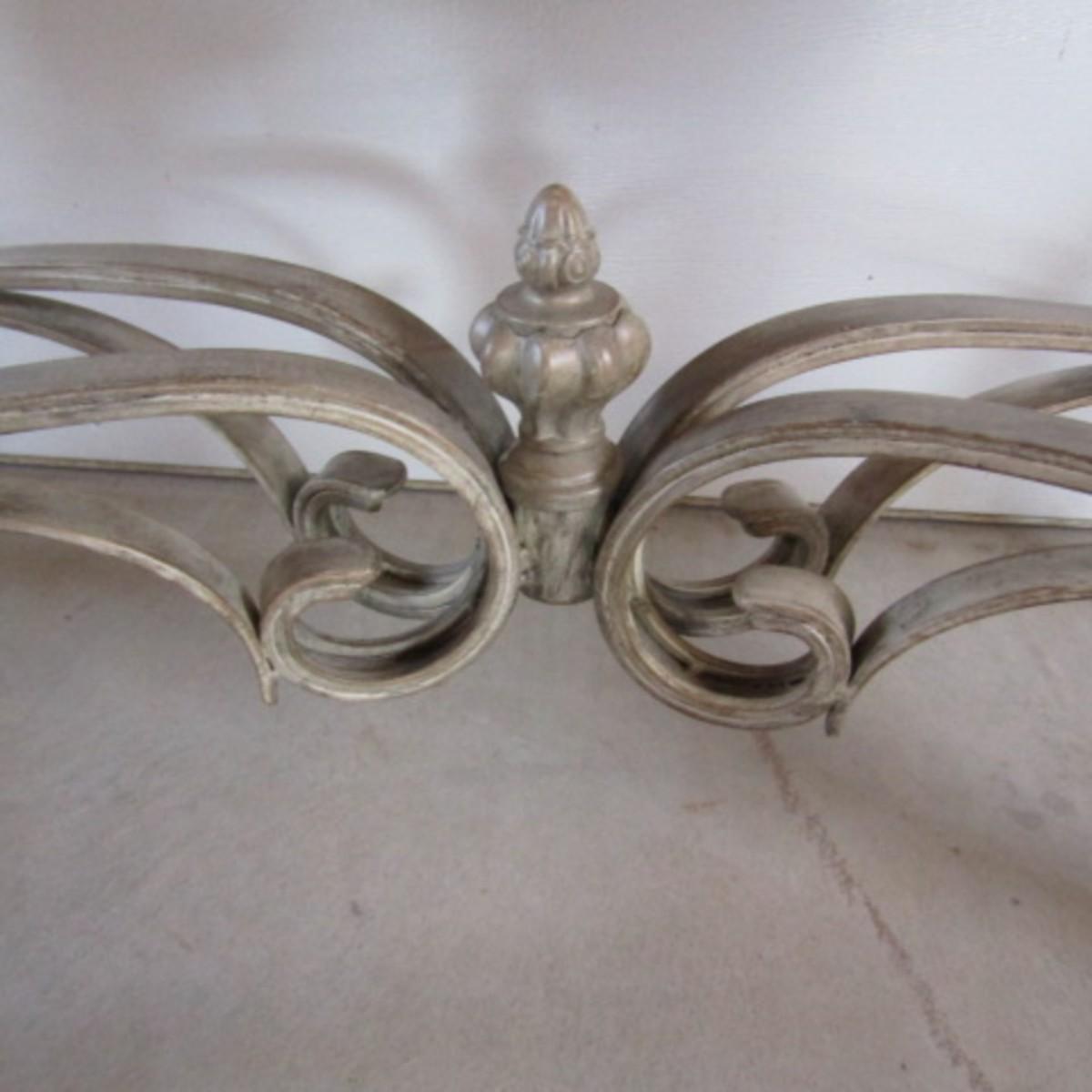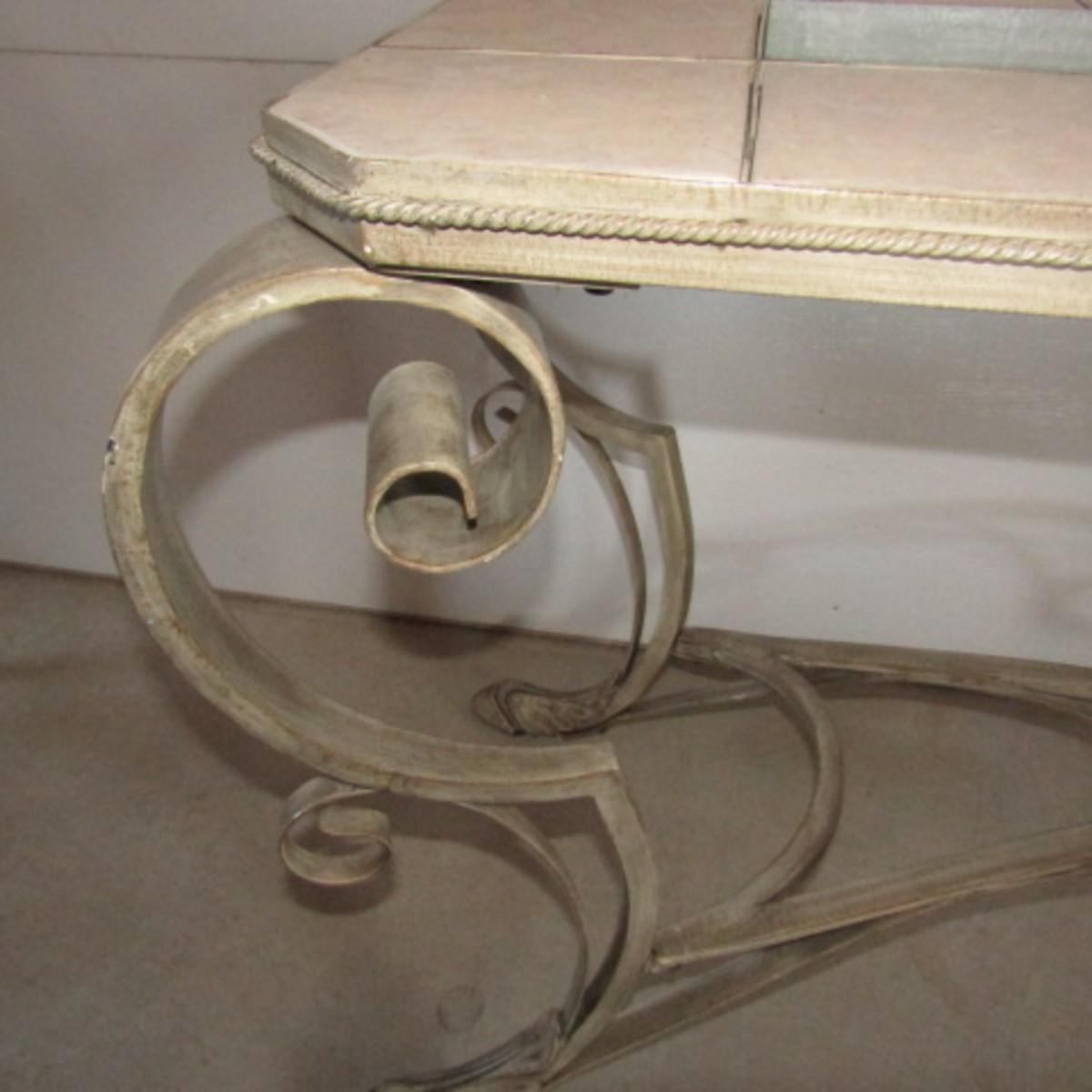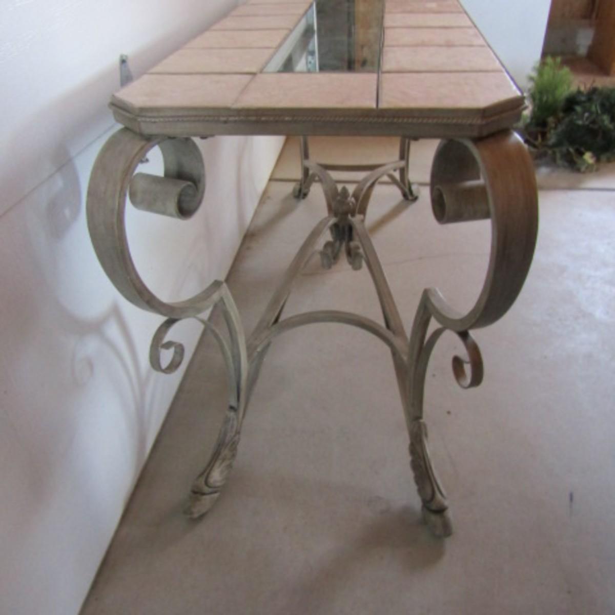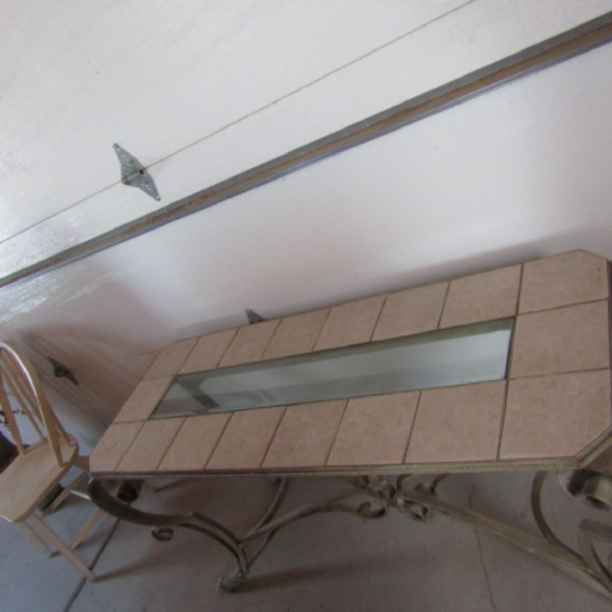 LOT 31 IRON FRAMED SOFA TABLE WITH TILE AND GLASS TOP (W)