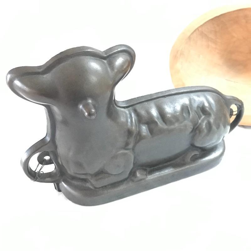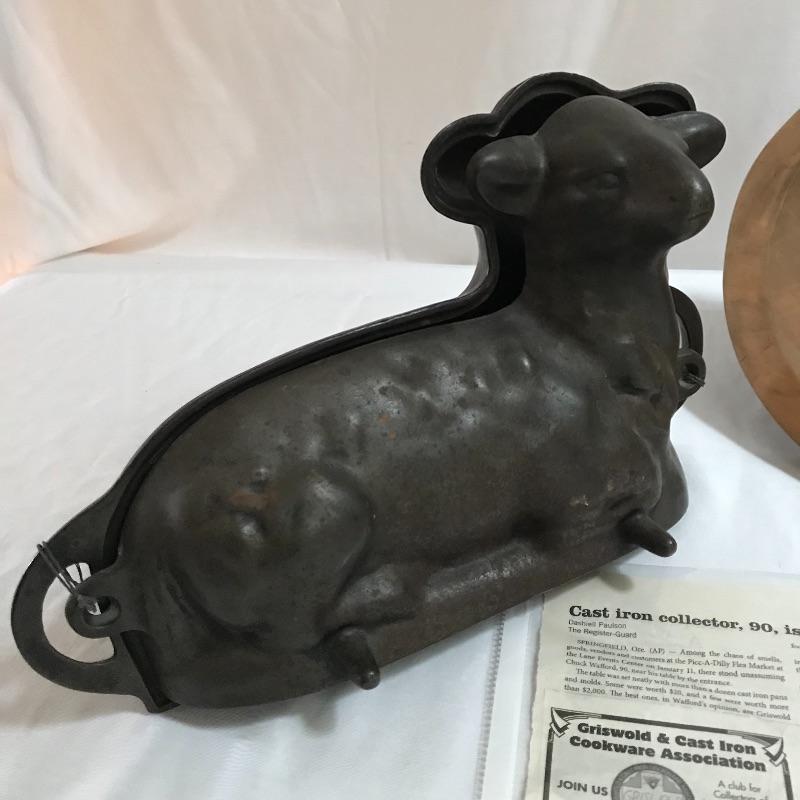 Lot 31 -Griswold Cast Iron Lamb Cake Mold and Vintage Dough Bowl