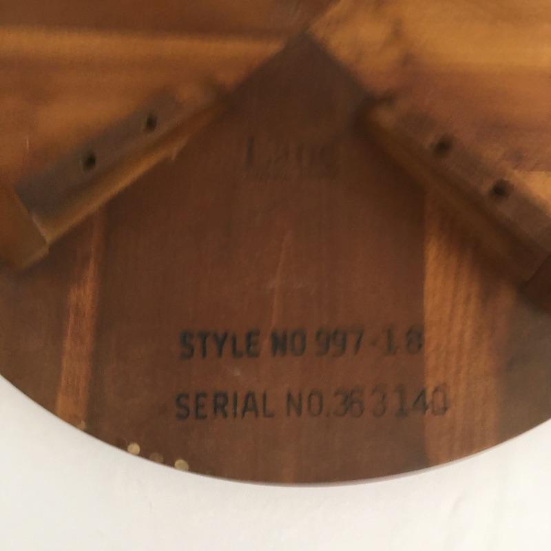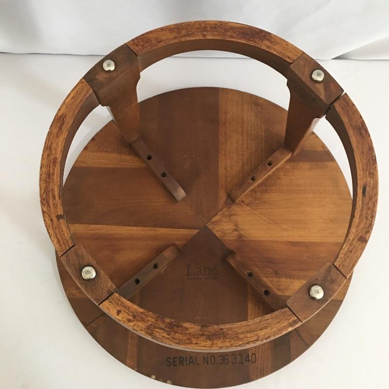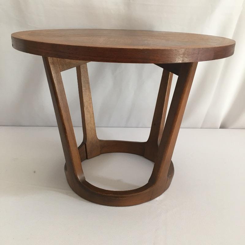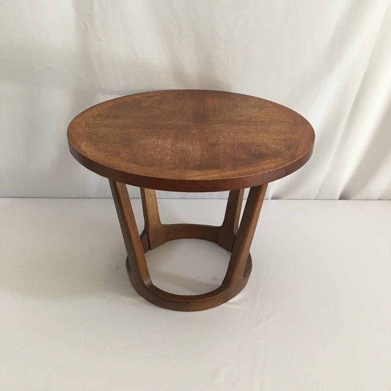 Lane mid century modern style side table (style # 997-18) This is a stunning table with a few discolorations on top, see pictures. A little elbow grease and you can restore this classic beauty to its original glory. Table measures 21”D x 16” tall.