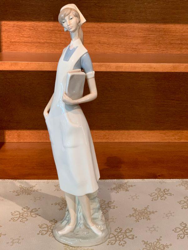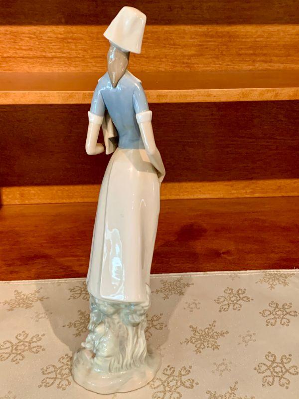Lladro nurse figurine #4603 14 1/2" tall. Elongated, white cap and apron. Retired