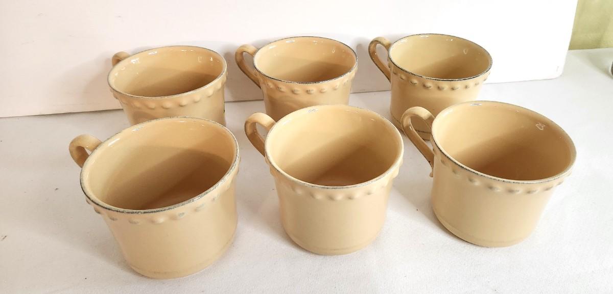 These are new with tags (retail $28.00/each) - set of six Costa Nova stoneware mugs - Pearl Yellow color. Each 3.25" tall.