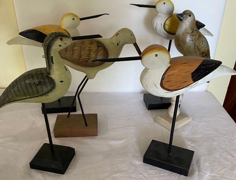 Lot of 6 Medium Size Wooden Stick Birds measuring approximately 10.5" tall