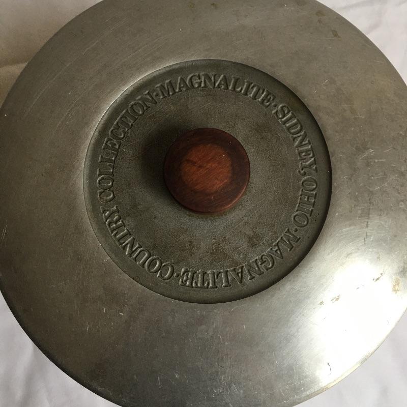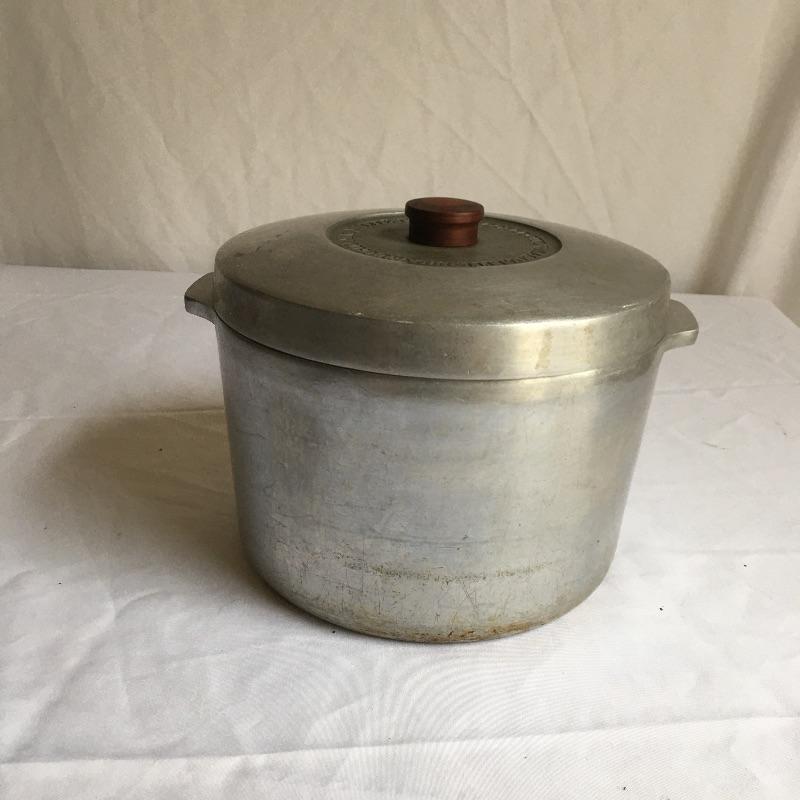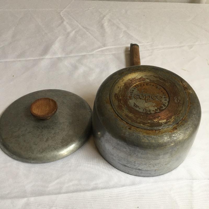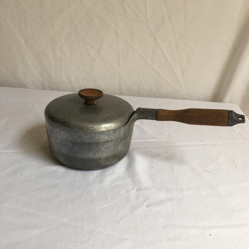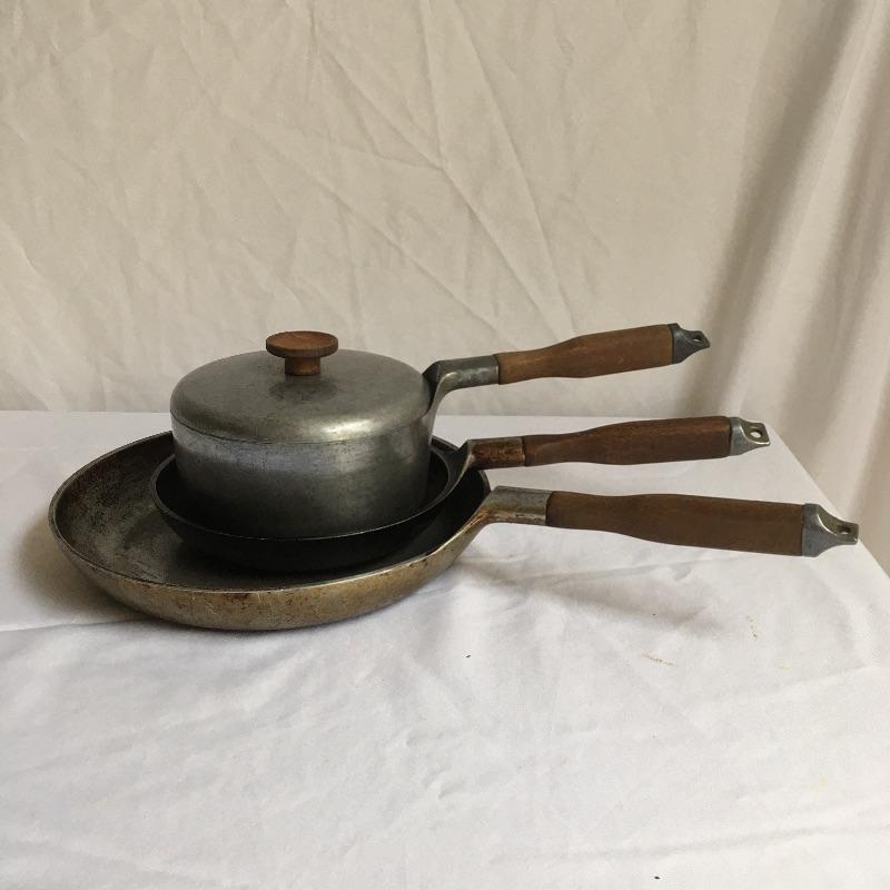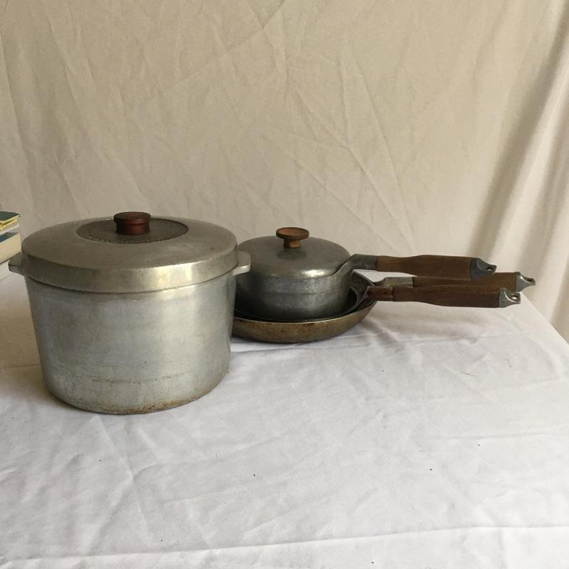 Magnalite Country Collection # 3738 7 quart pot with lid and three Copco wood handled pans with one lid. Go old school with these oldies but goodies.
