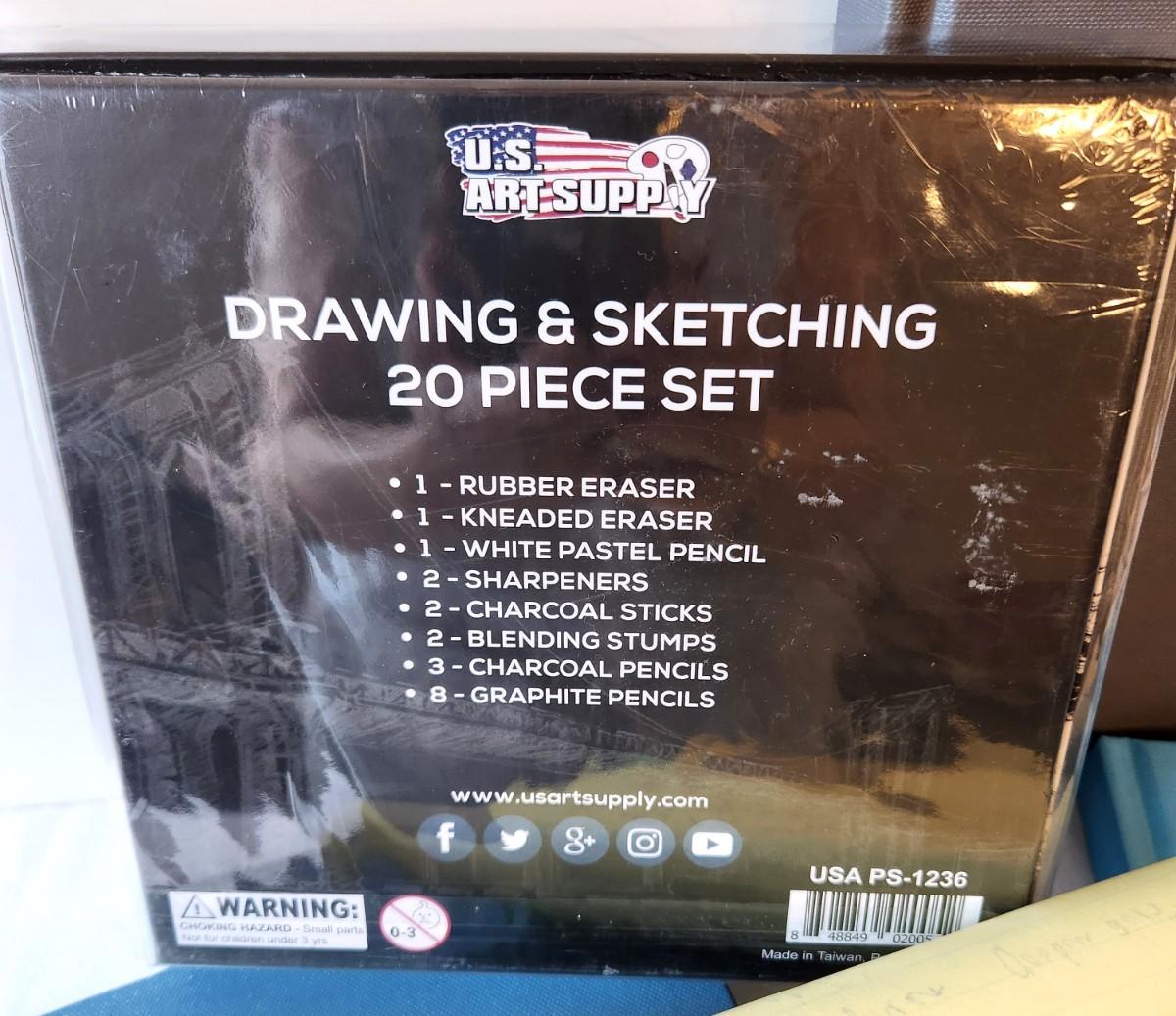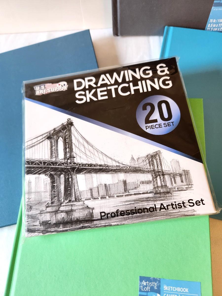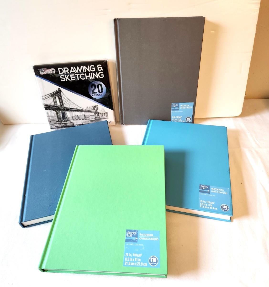 Professional Artist Drawing and Sketching Set (20 Pieces) for Black and White sketching and 4 nice hardcover blank sketch books - each has 110 sheets. New and unused.