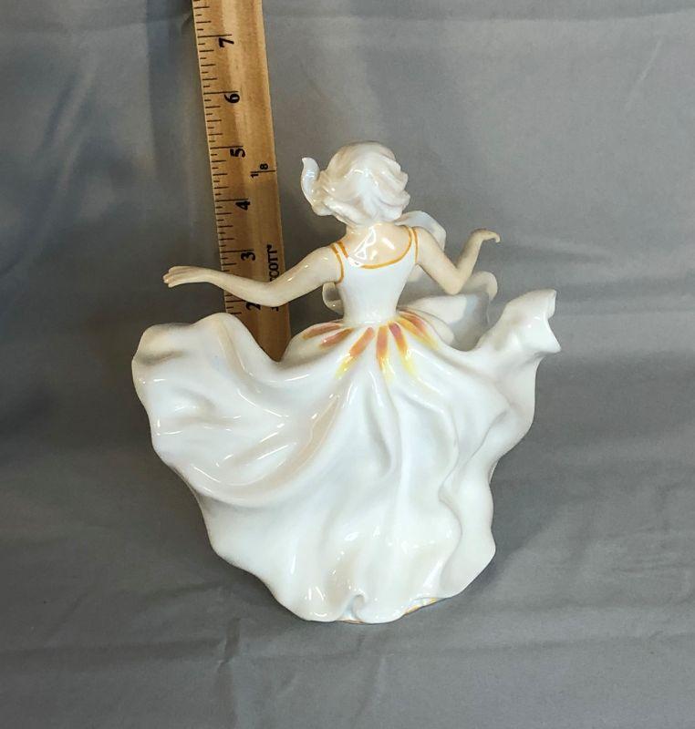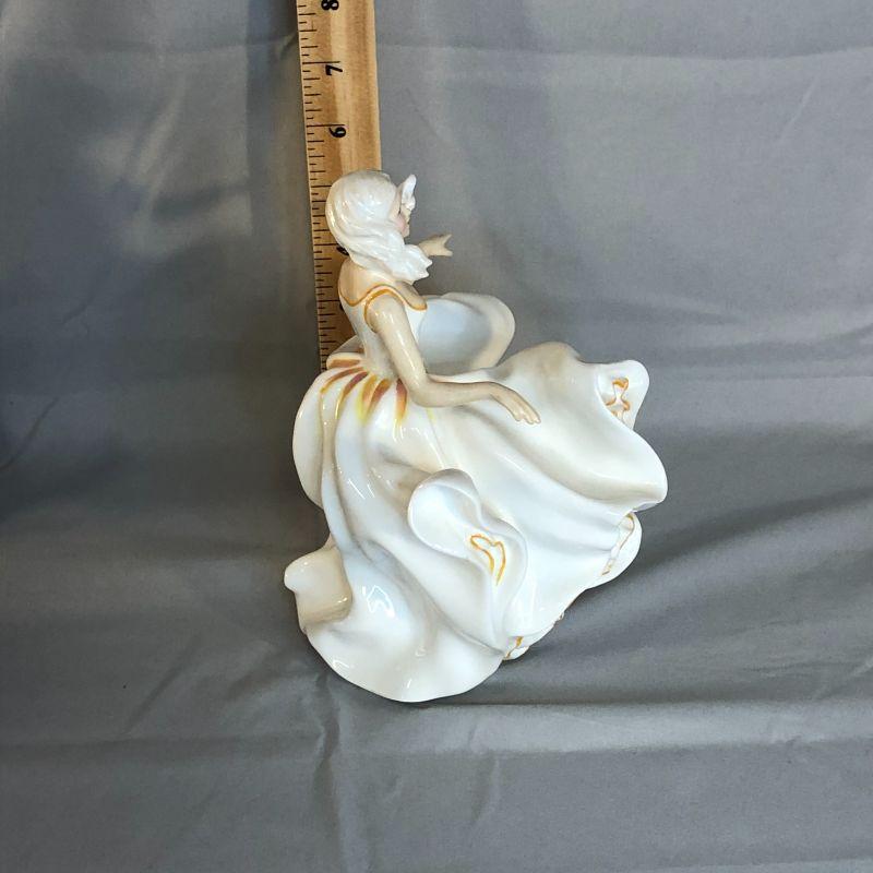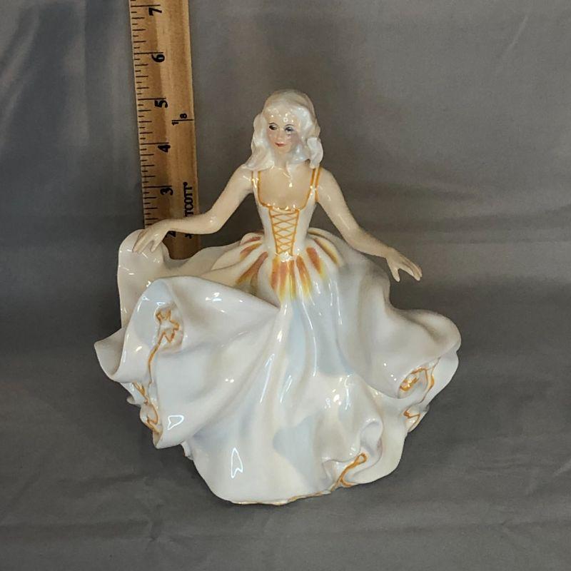 This beautiful lady is in excellent condition with no chips, cracks, repairs, or other damage found. She stands just about 8" tall and was made by Royal Doulton between 1975-1993.