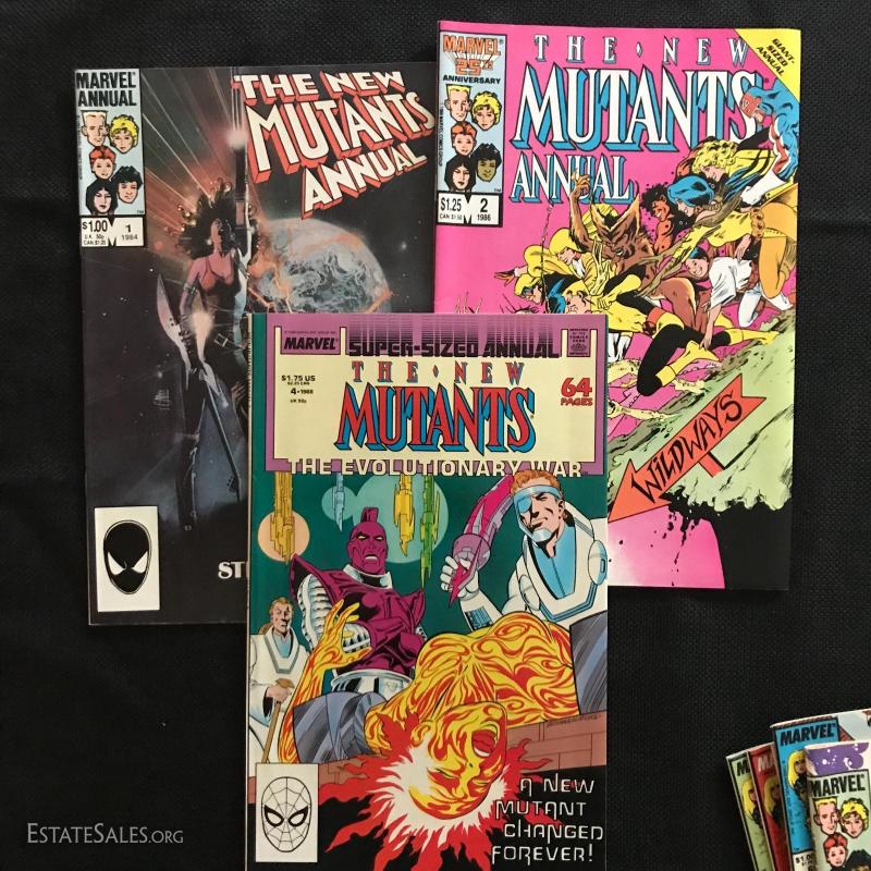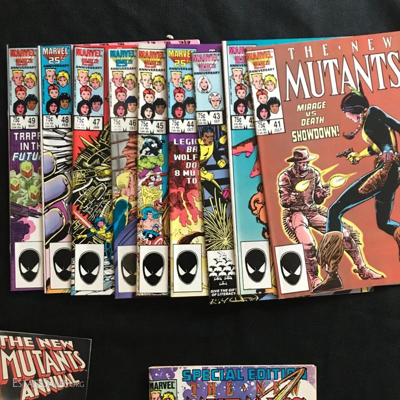 Huge lot of 77 issues of "The New Mutants" by Marvel Comics. Includes Vol. 1 No. 1 March 1983 issue. Also includes some annuals and special edition, and a couple of duplicate issues. 77 total Issues in the lot. Fits in TWO Priority Boxes for shipping, or local pick up in Asheville, NC.