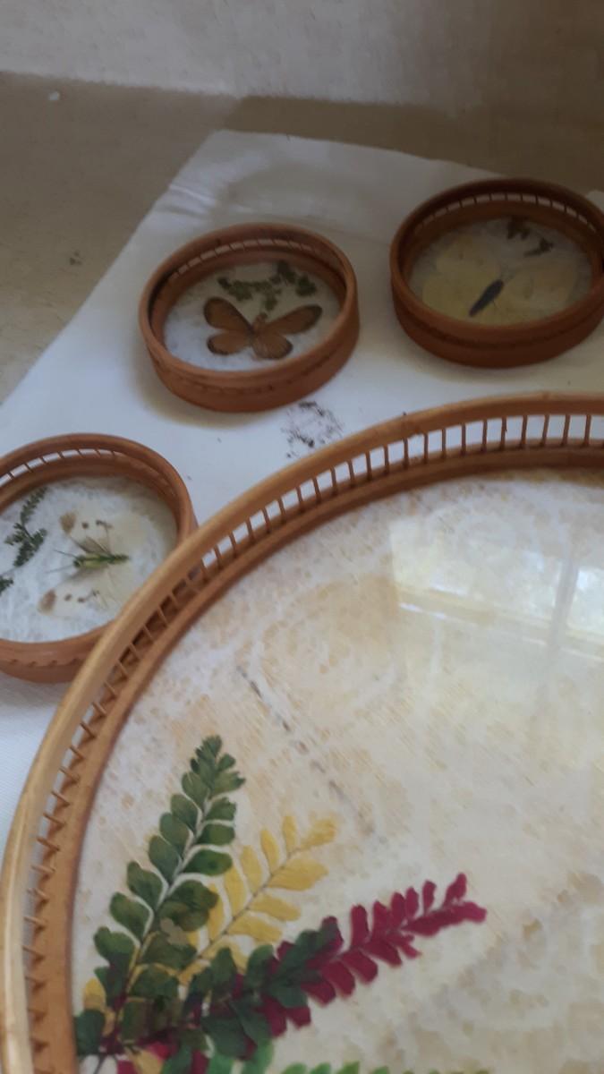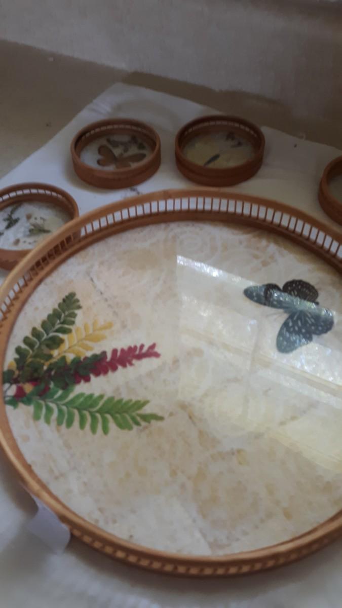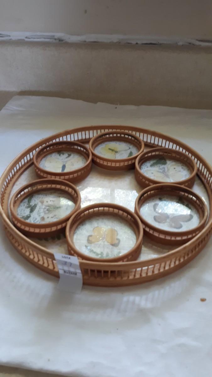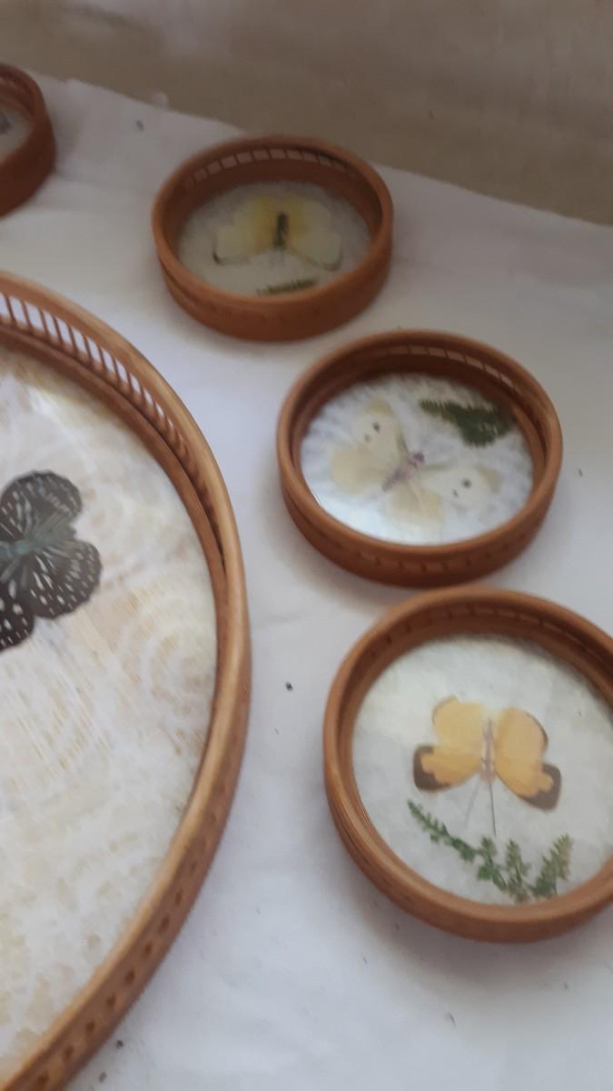 Lot 31 - Vintage Butterfly Tray and Coasters Set