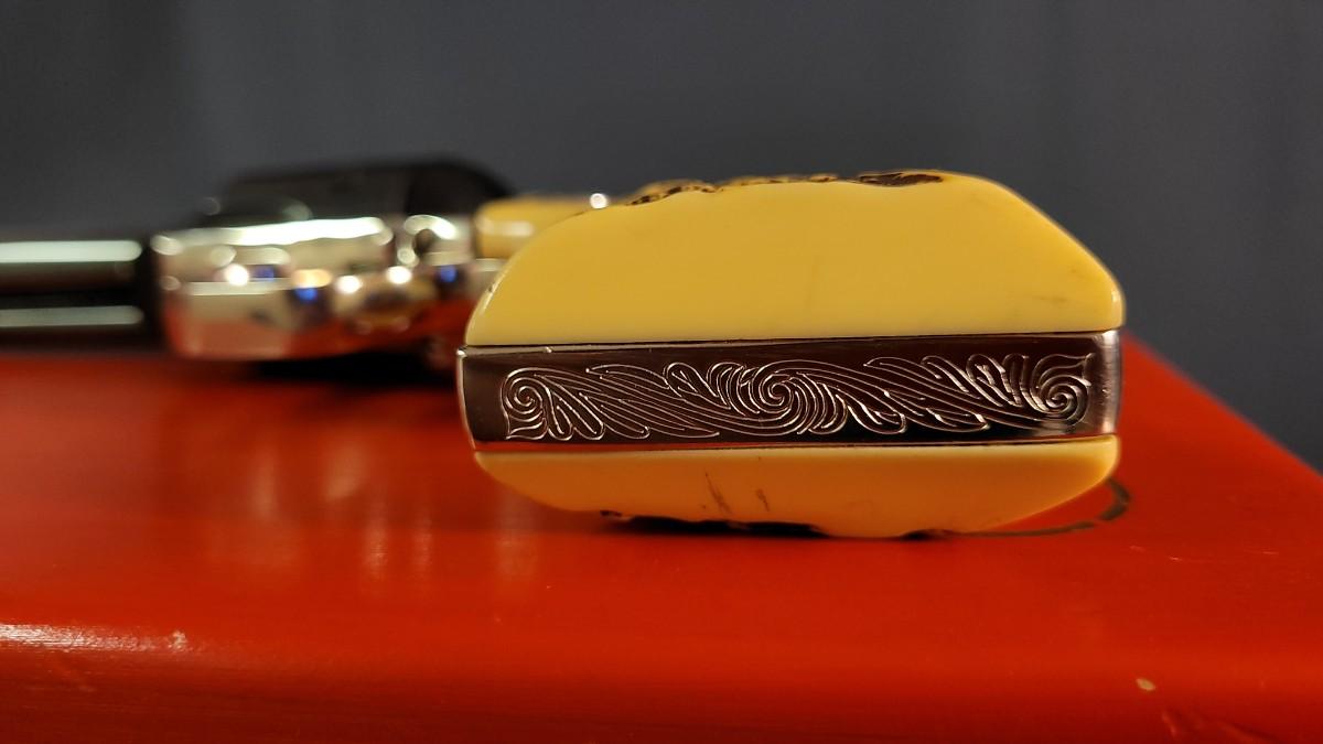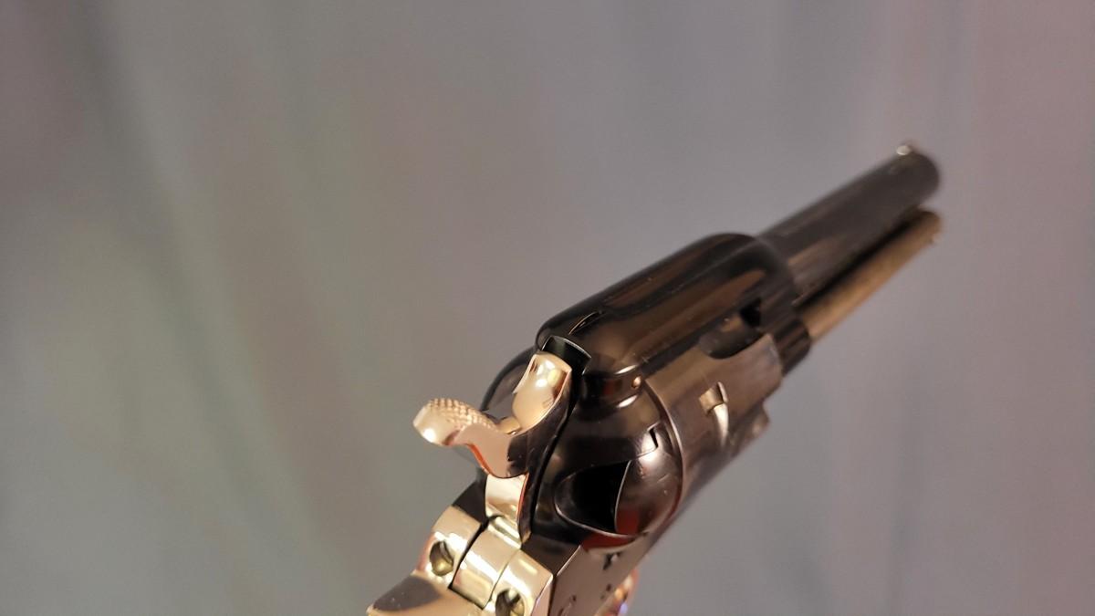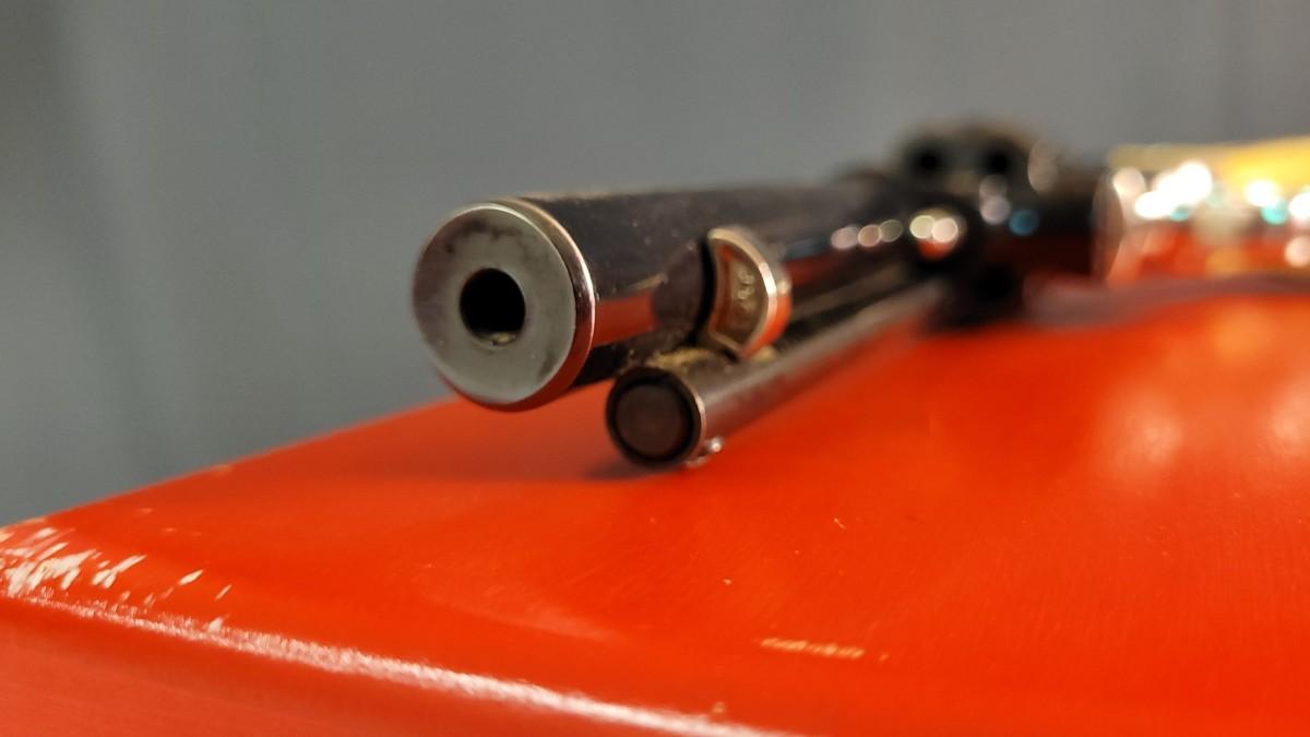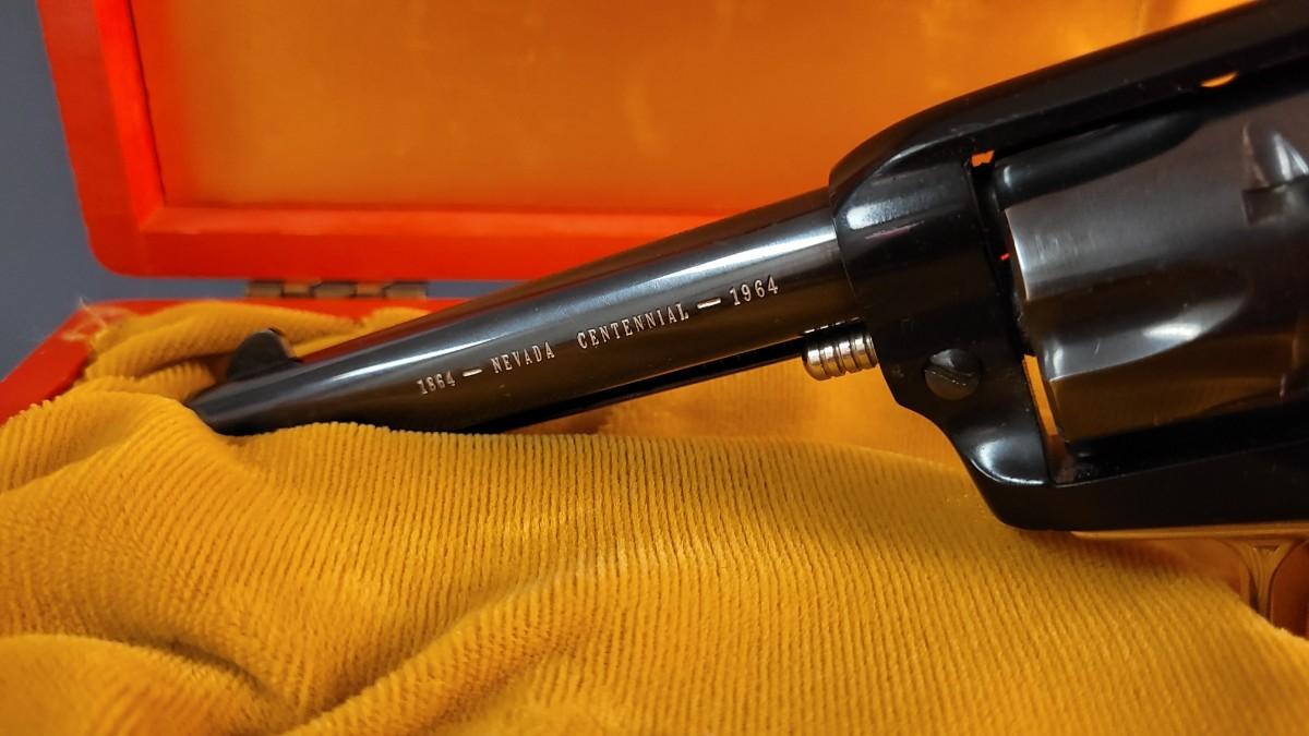The Colt Frontier Scout was born in 1957 and was made until 1970 when Colt carried on with their Peacemaker 22 and then later a “New Frontier Scout”. The Frontier Scout was scaled down slightly and was lighter than its bigger bore brother. This specific example is from 1959 according to Colt’s serial number lookup and also a giveaway is the “F” suffix at the end of the serial number.