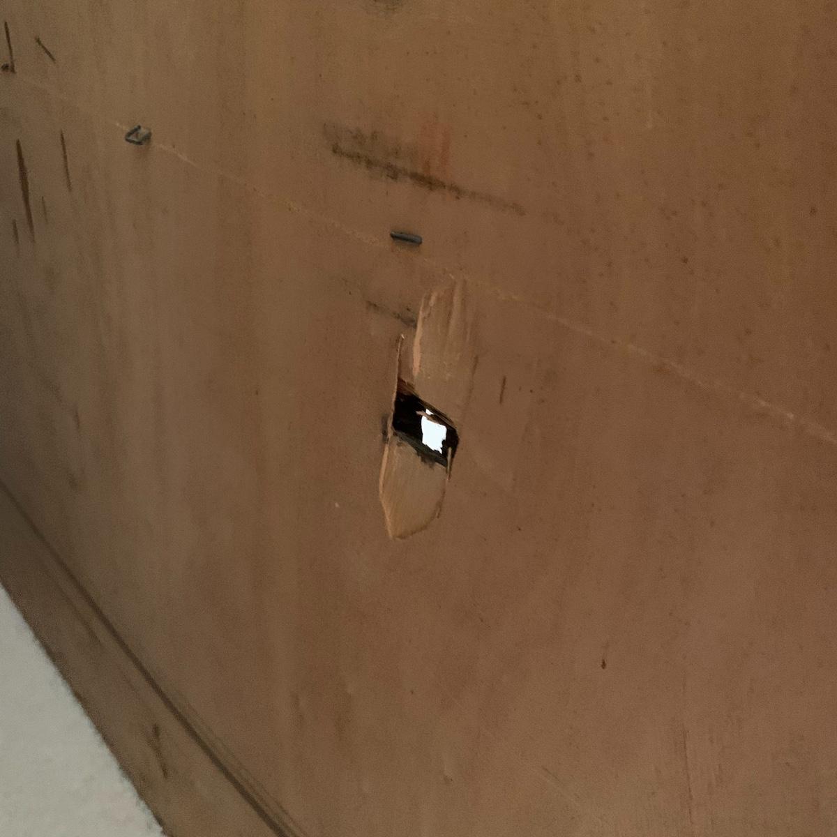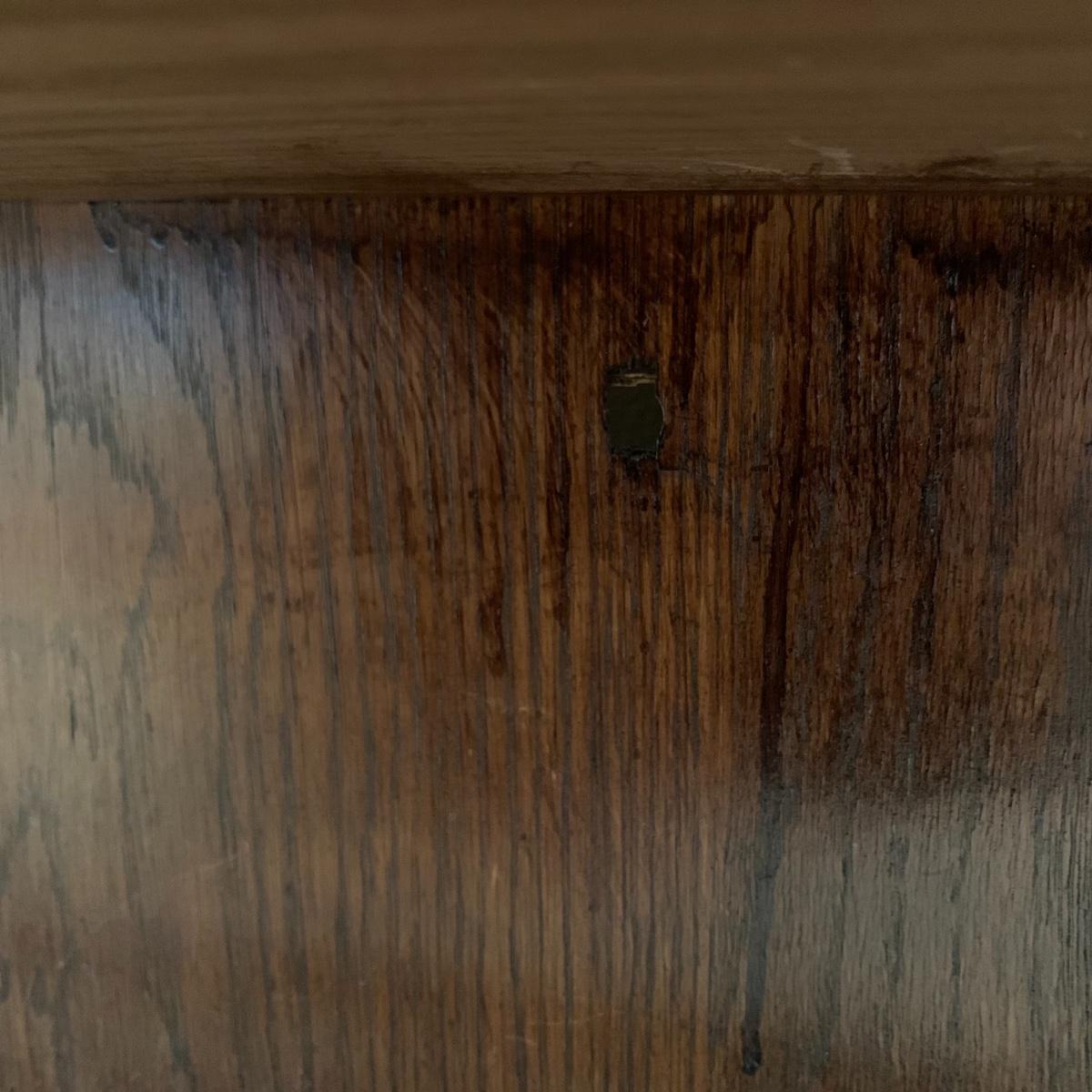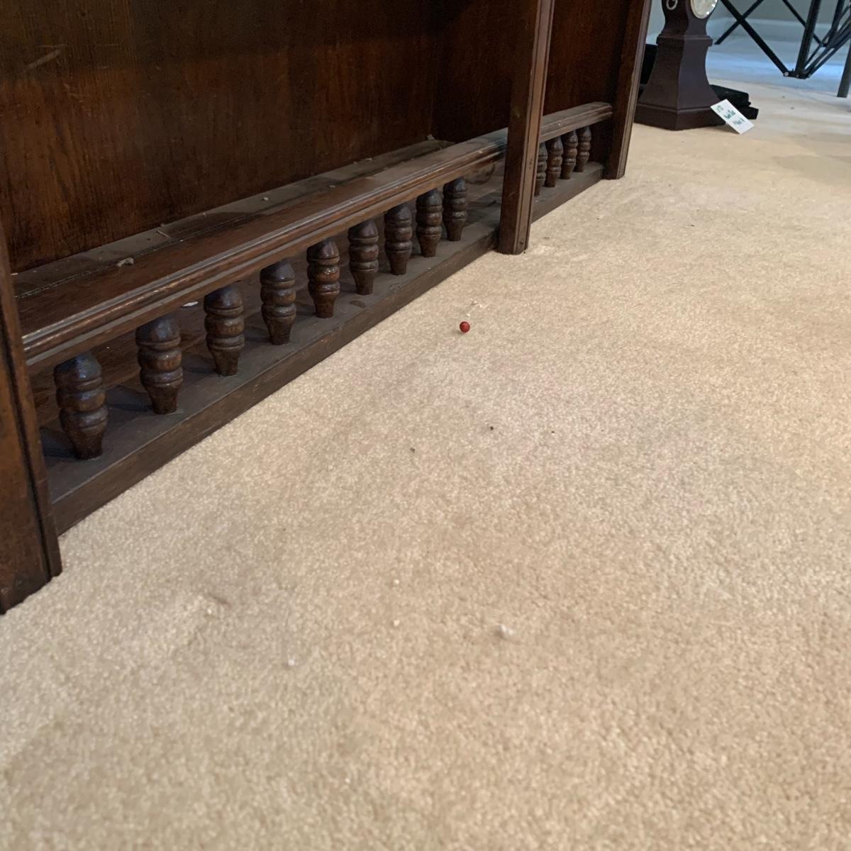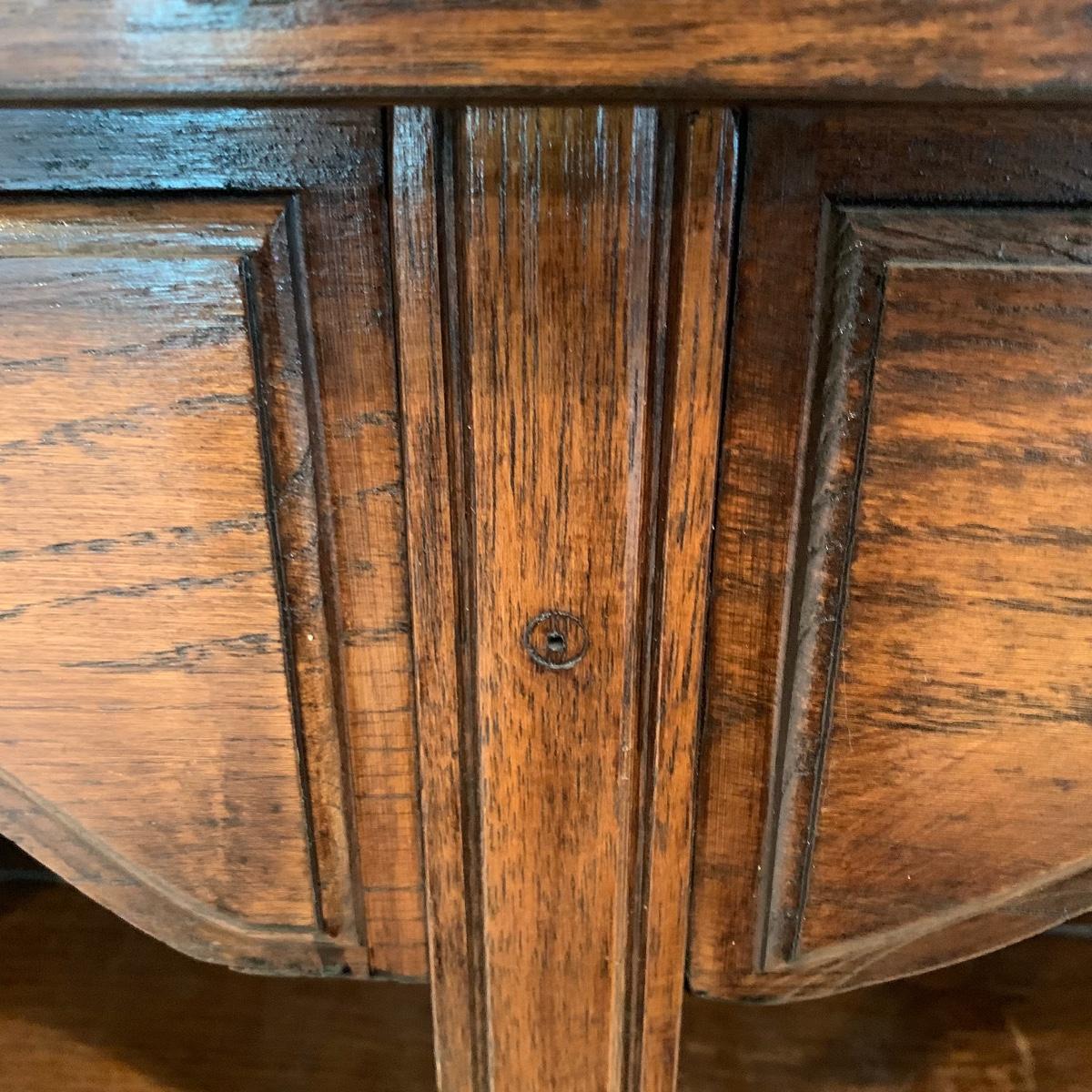 Don’t miss this vintage book case. It’s got enough room for lots of heavy books or items. It’s stained dark with cool trim details( see pics). There is some damage, a scratch on the front as well as two drilled holes the were probably for electric cords. It measures 68” wide X 45” tall X 13” deep. Please bring help to move this item. It needs to come down a flight of stairs and is all one piece. Local pickup only.