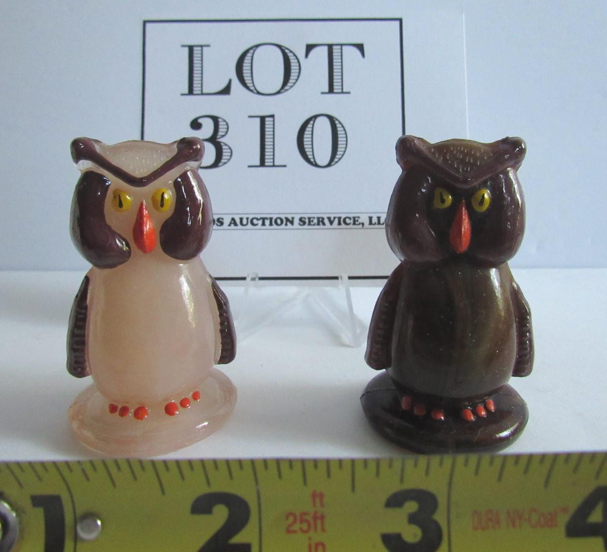 Lot 310:  2 Older Hand Painted Boyd Glass Owls