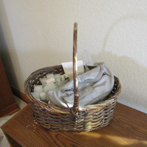 LOT 310  LARGE WICKER BASKET FULL OF TOILETRY SAMPLES