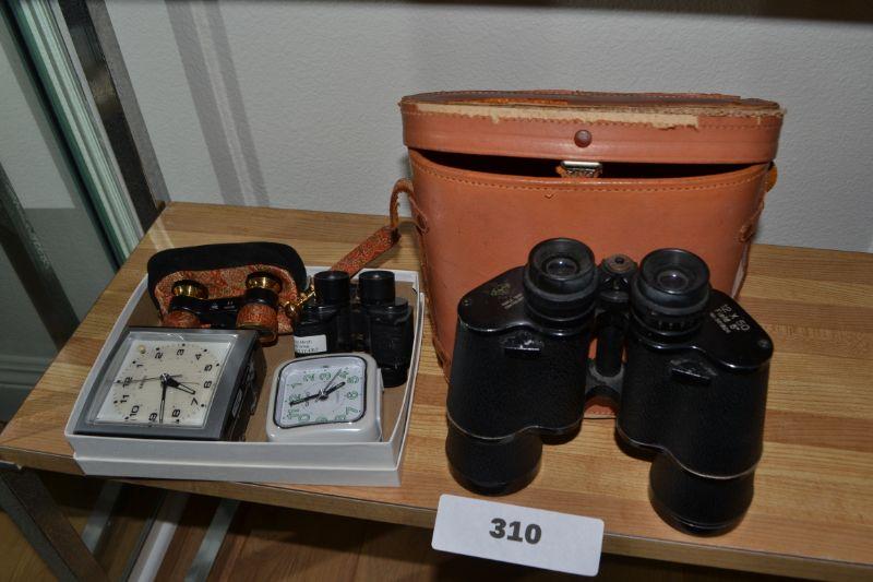 LOT 310 BINOCULARS, OPERA GLASSES AND CLOCKS