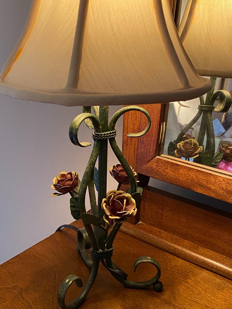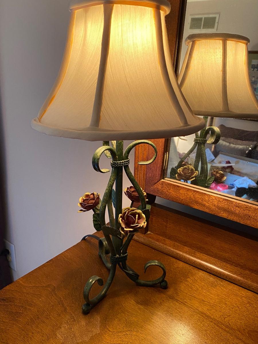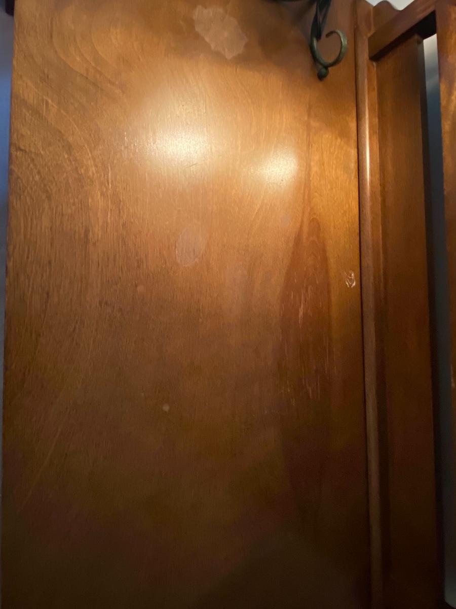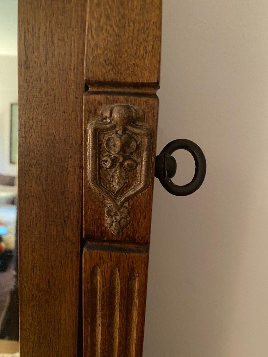 42x21x67 inches tall. This is even prettier in person! Solid and fully functional. Does some home light wear due to age. Located on the second floor, you will need to bring help to move. Accent lamp included. Please see all pictures as they are the best representation of the items in the lot, the condition of the lot, and will show measurements if taken. If purchasing furniture you must be able to move yourself with your own help, and truck. This is located on the first floor.